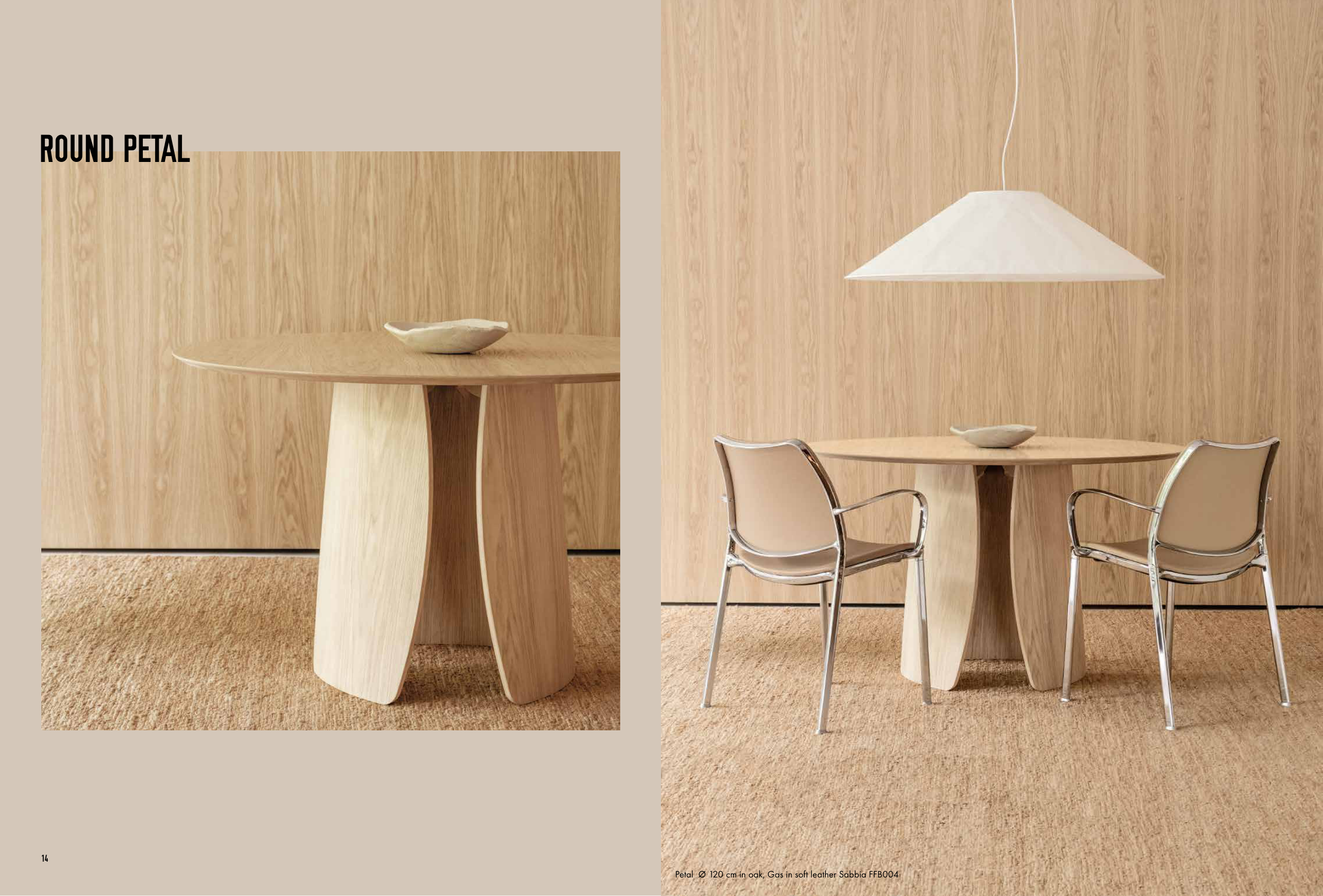 Petal Ø 120 cm in oak, Gas in soft leather Sabbia FFB004
