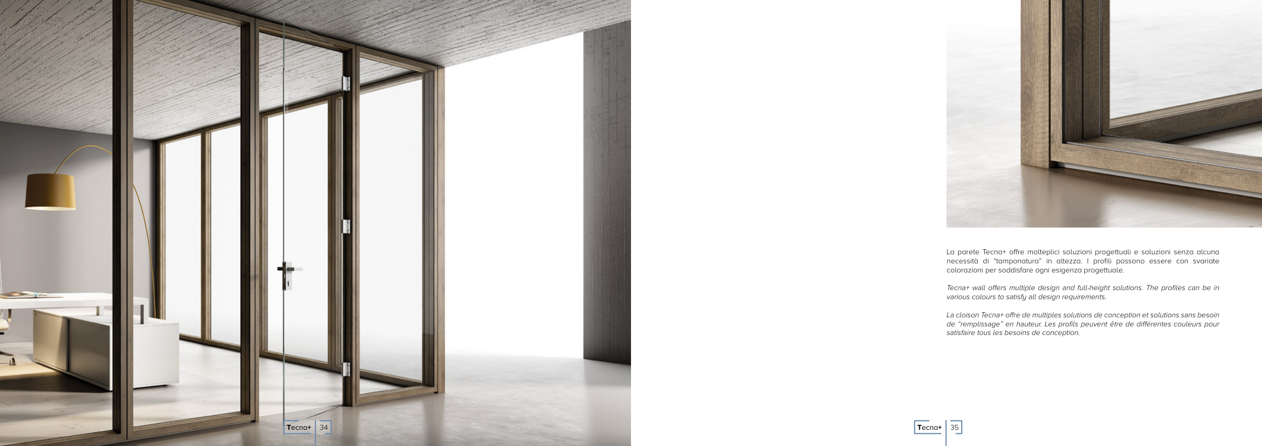 Tecna+ wall offers multiple design and full-height solutions. The profiles can be in