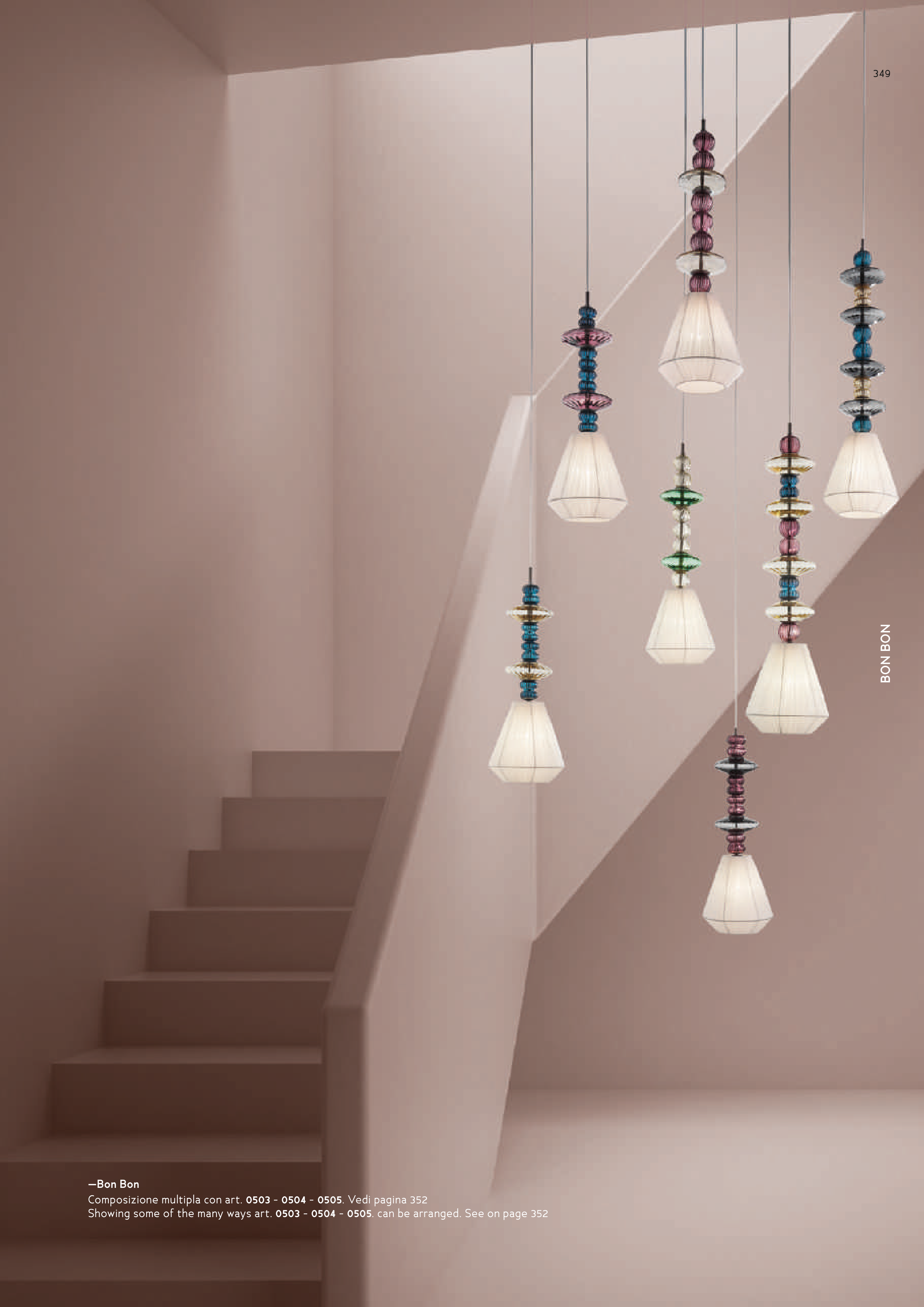 BON BON —Bon Bon Composizione multipla con art. 0503 - 0504 - 0505. Vedi pagina 352 Showing some of the many ways art. 0503 - 0504 - 0505. can be arranged. See on page 352 349