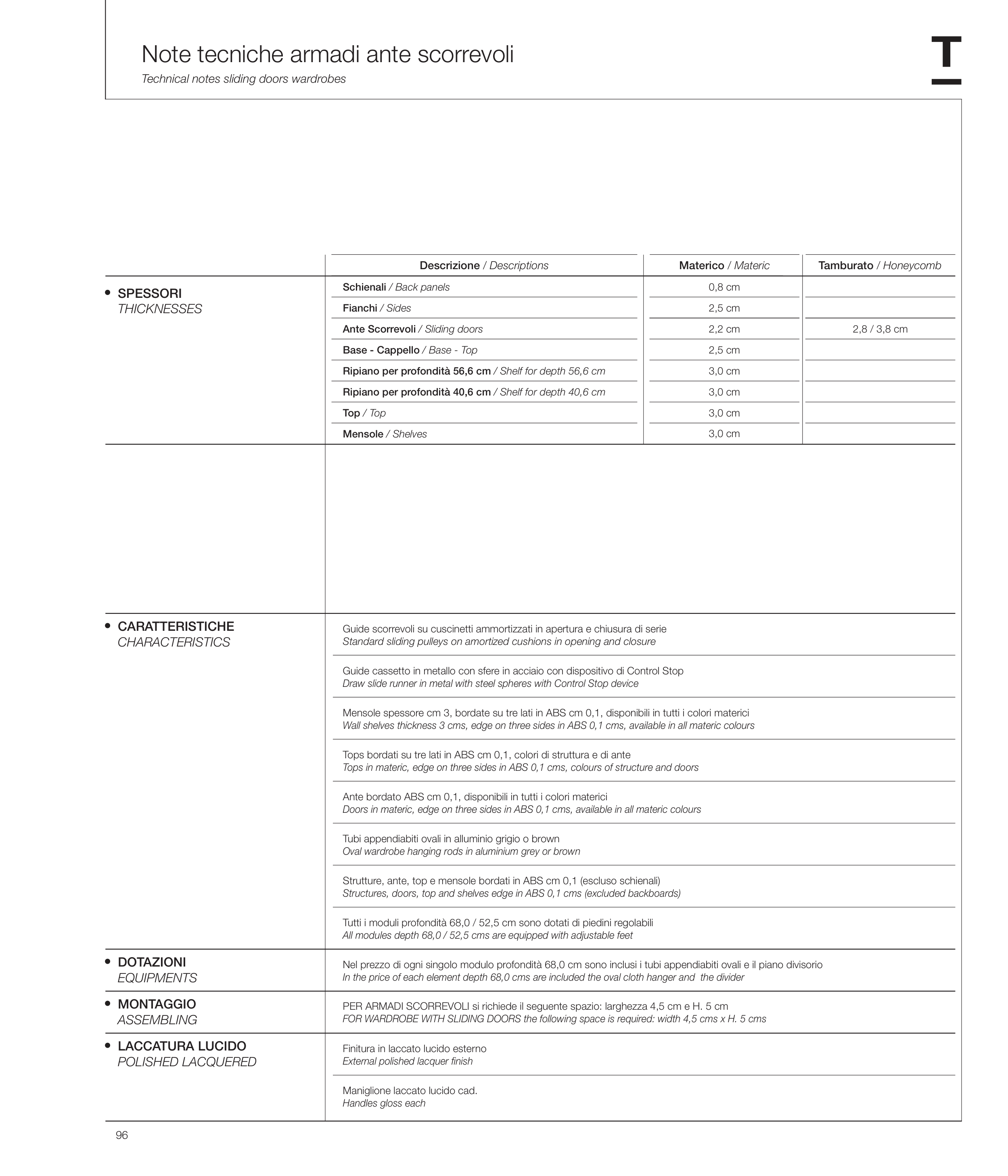 Note tecniche armadi ante scorrevoli