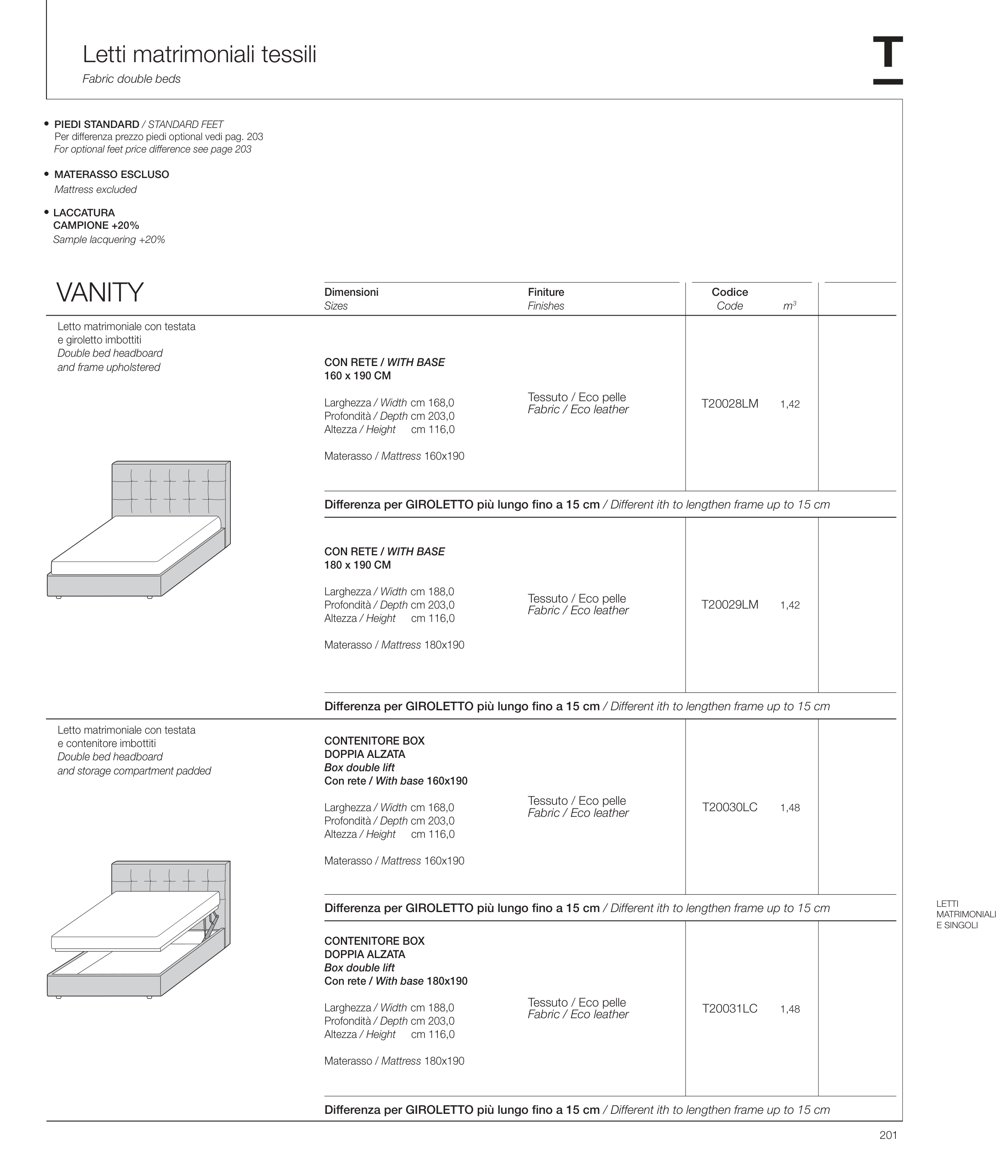 Per differenza prezzo piedi optional vedi pag. 203