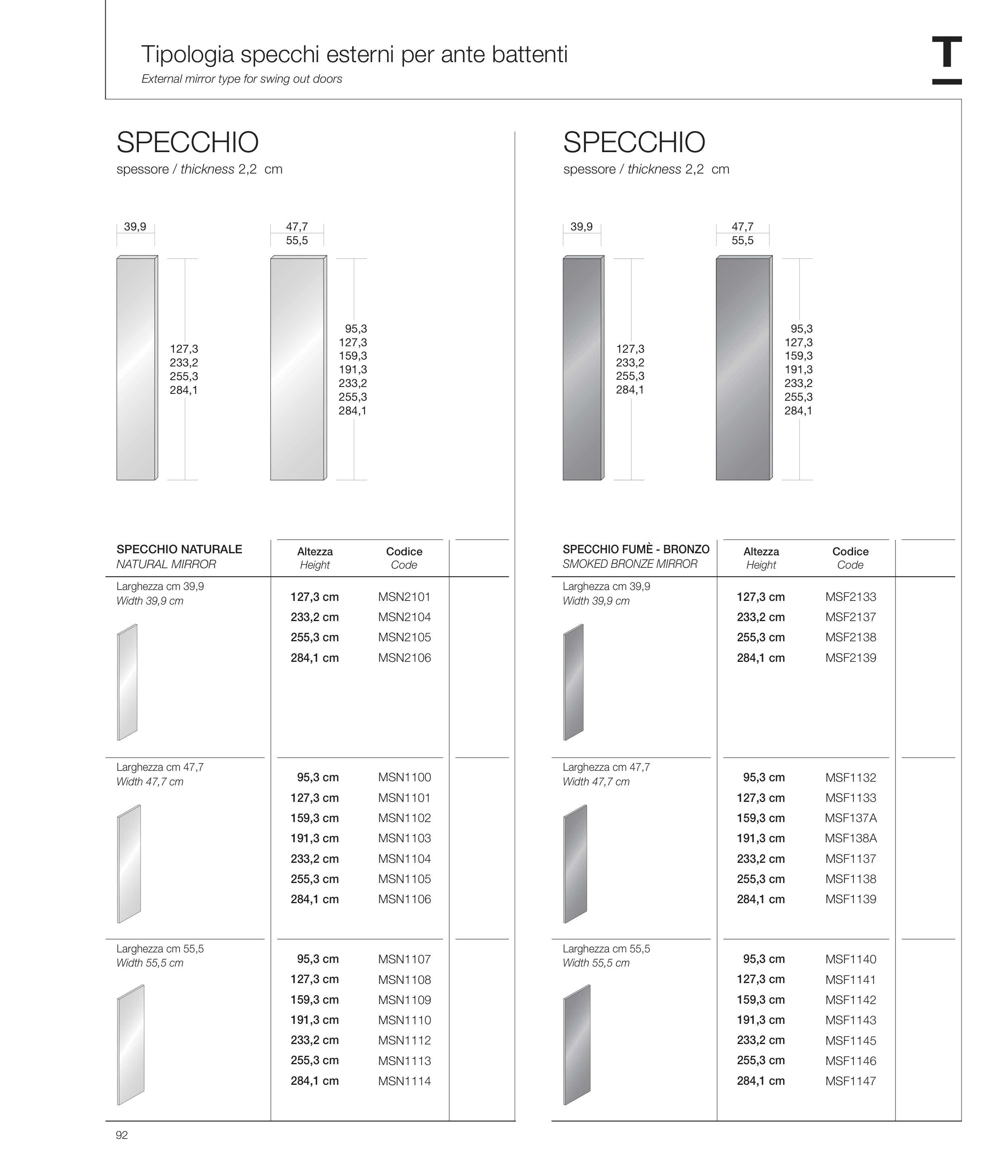 Tipologia specchi esterni per ante battenti