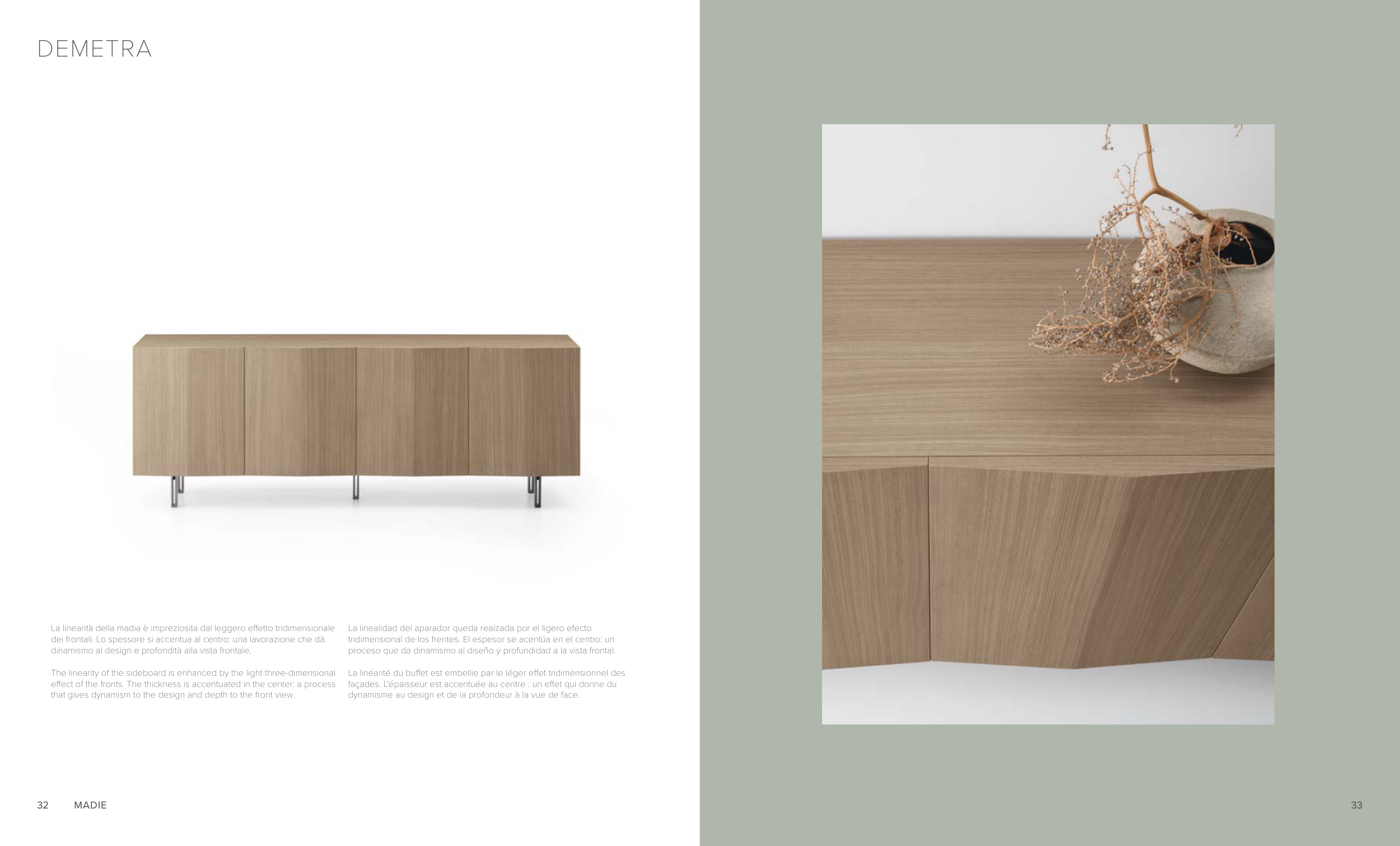 La linearità della madia è impreziosita dal leggero effetto tridimensionale