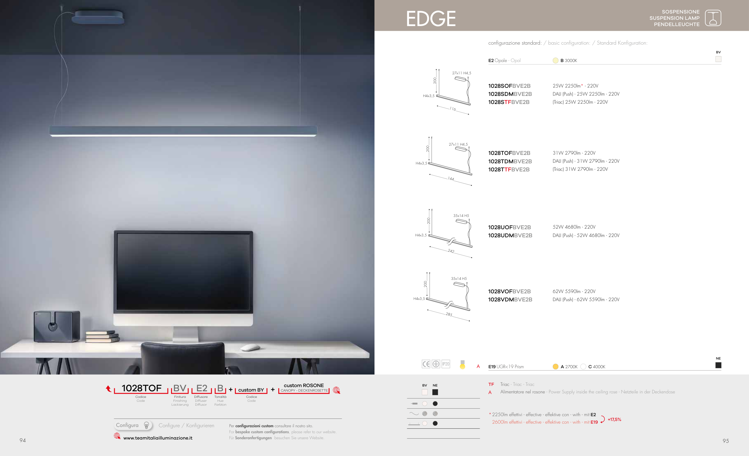 * 2250lm effettivi - effective - effektive con - with - mit E2