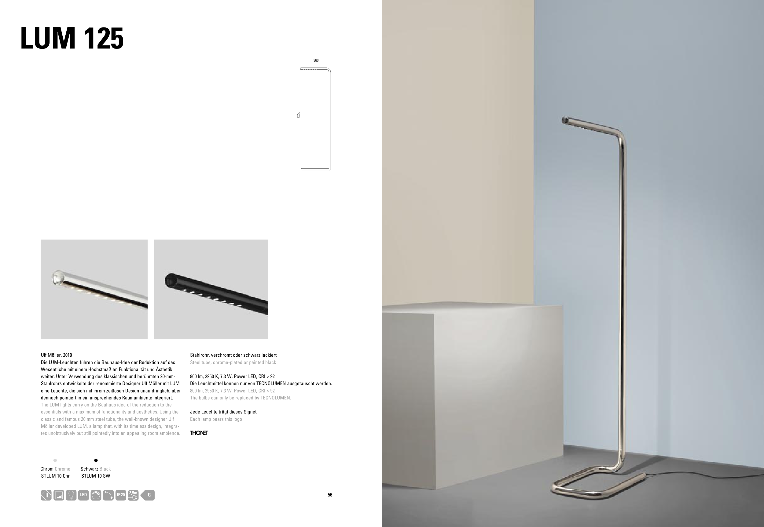 Möller developed LUM, a lamp that, with its timeless design, integra-