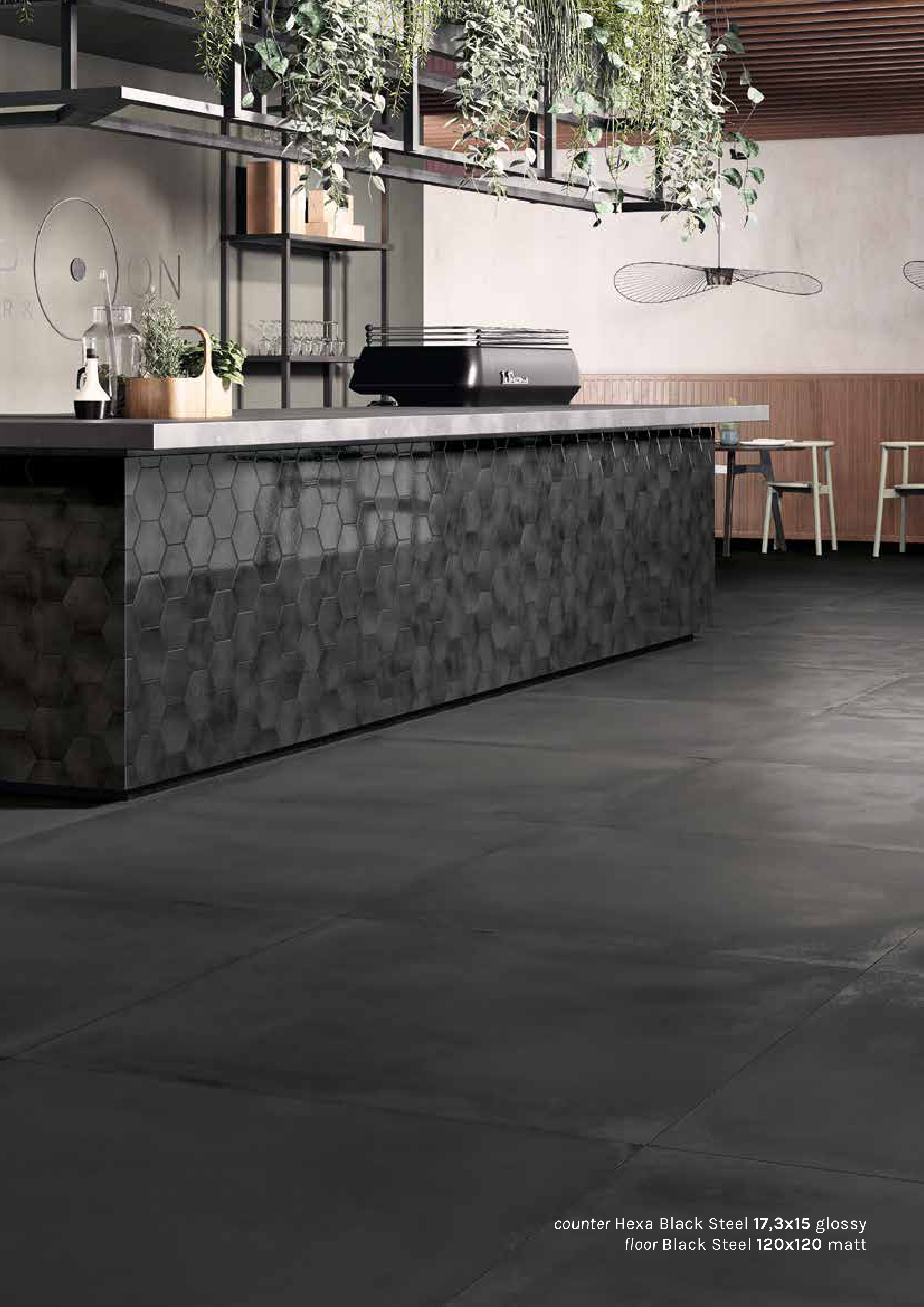 counter Hexa Black Steel 17,3x15 glossy
