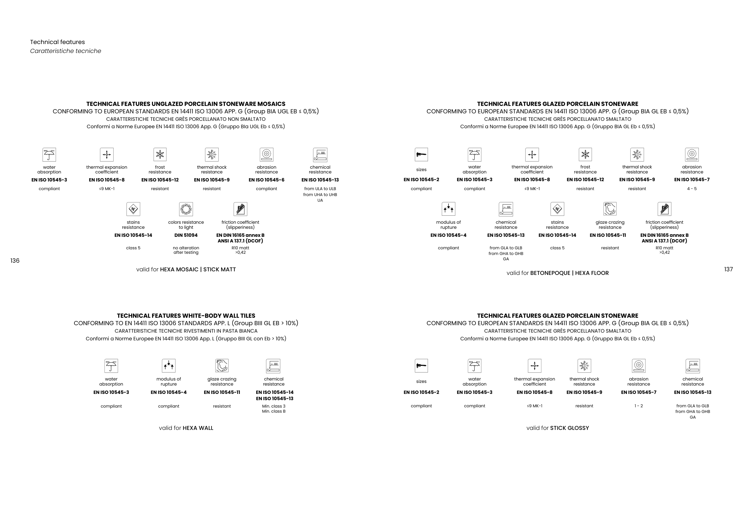 TECHNICAL FEATURES GLAZED PORCELAIN STONEWARE
