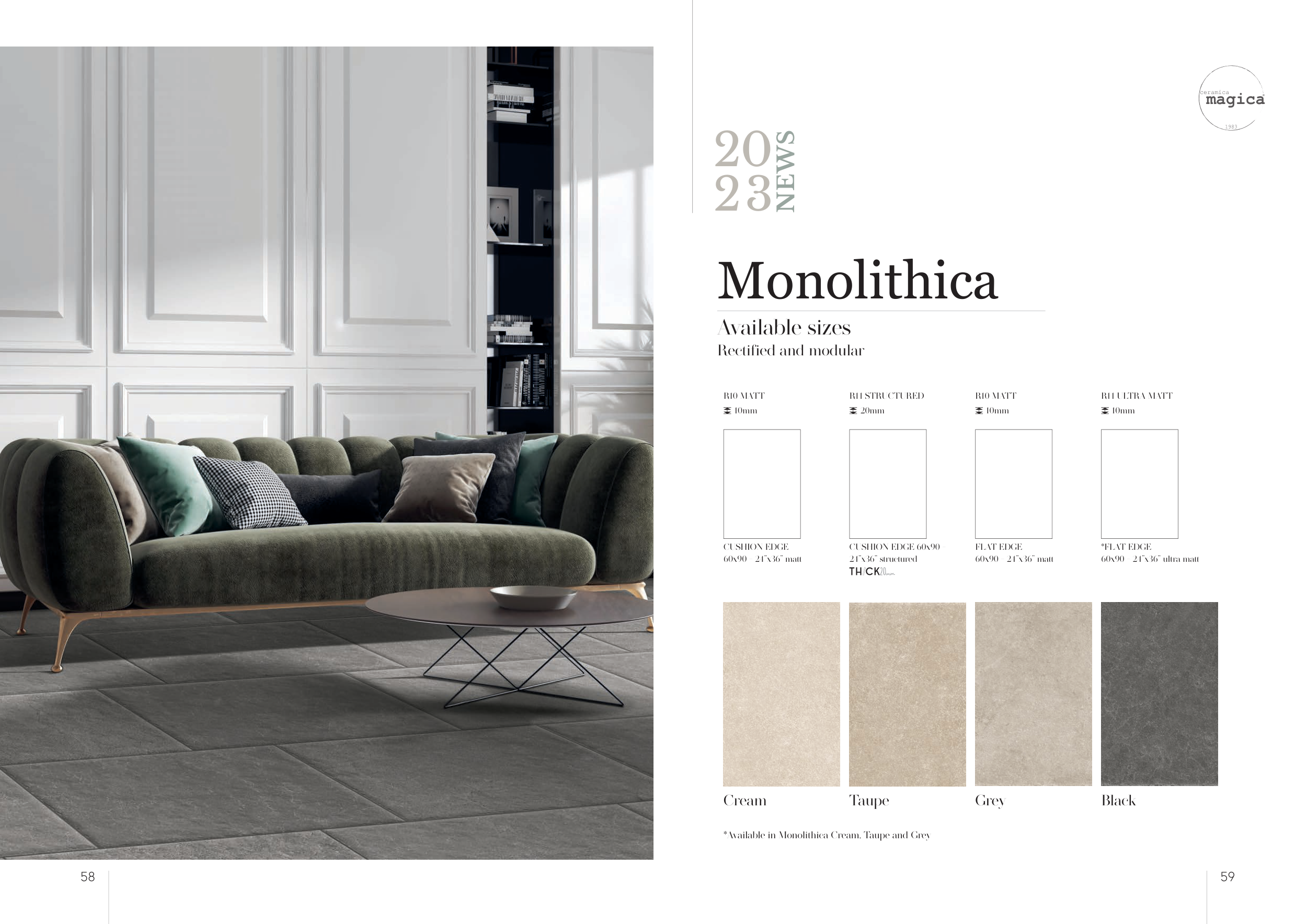 *Available in Monolithica Cream, Taupe and Grey