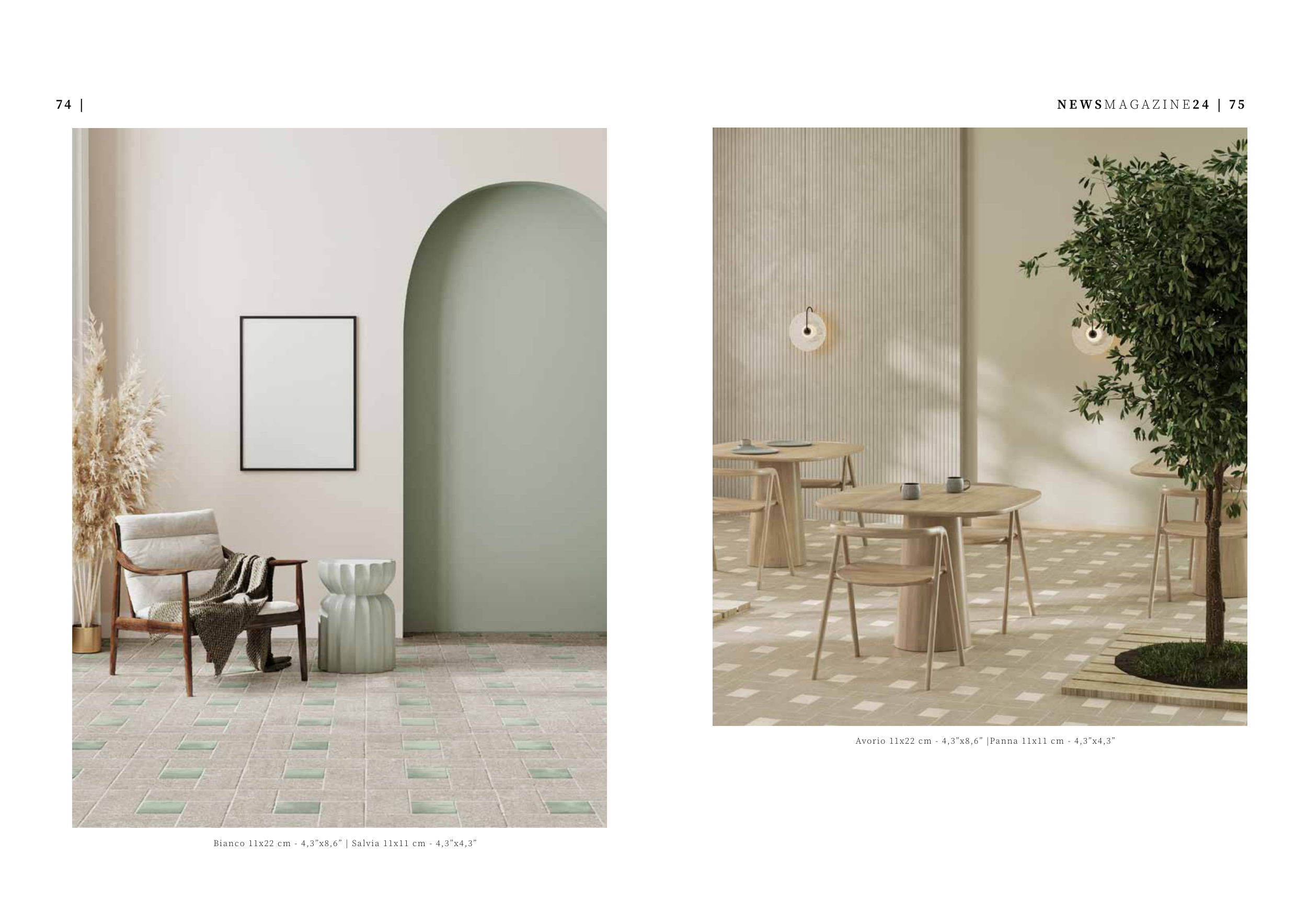N E W S M A G A Z I N E 2 4 | 75 74 | Bianco 11x22 cm - 4,3”x8,6” | Salvia 11x11 cm - 4,3”x4,3” Avorio 11x22 cm - 4,3”x8,6” |Panna 11x11 cm - 4,3”x4,3”