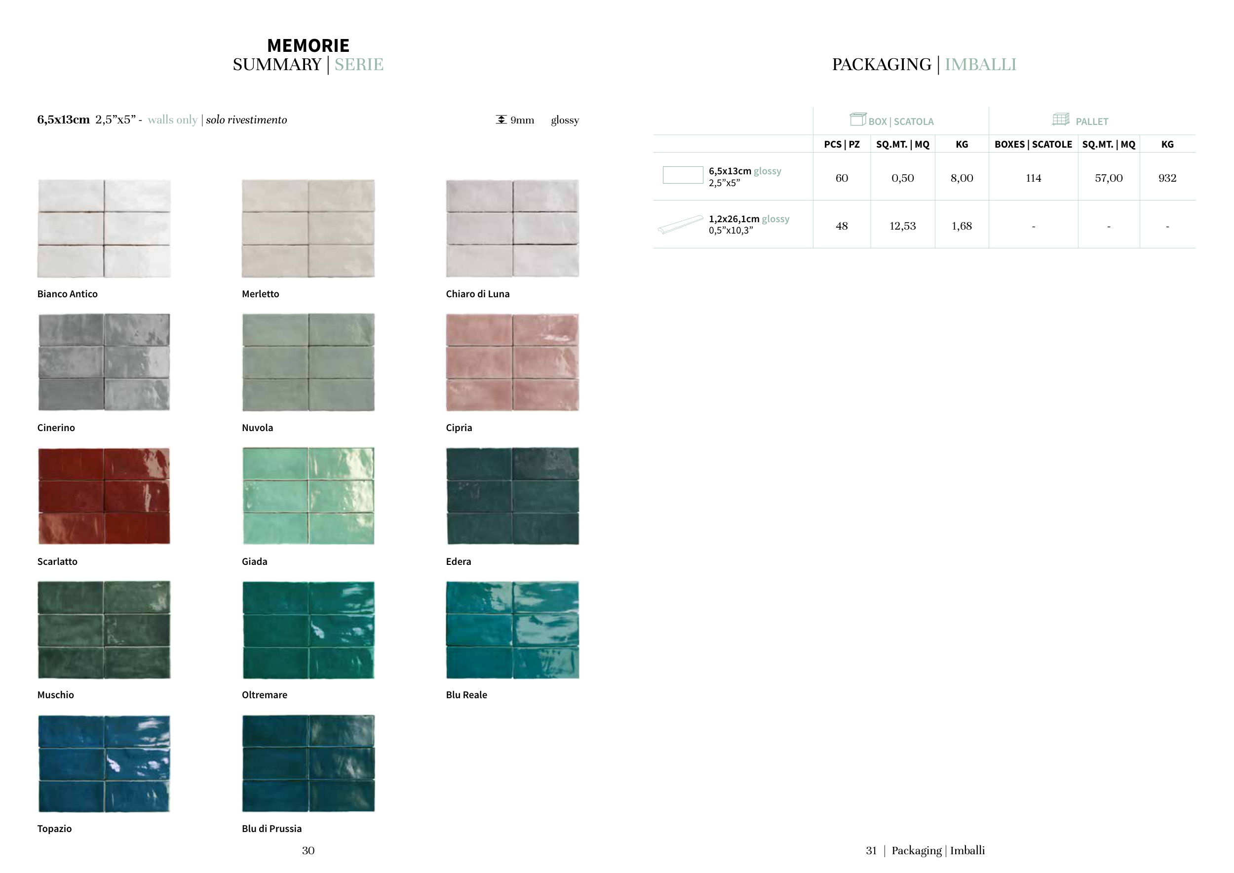 6,5x13cm 2,5”x5” - walls only | solo rivestimento