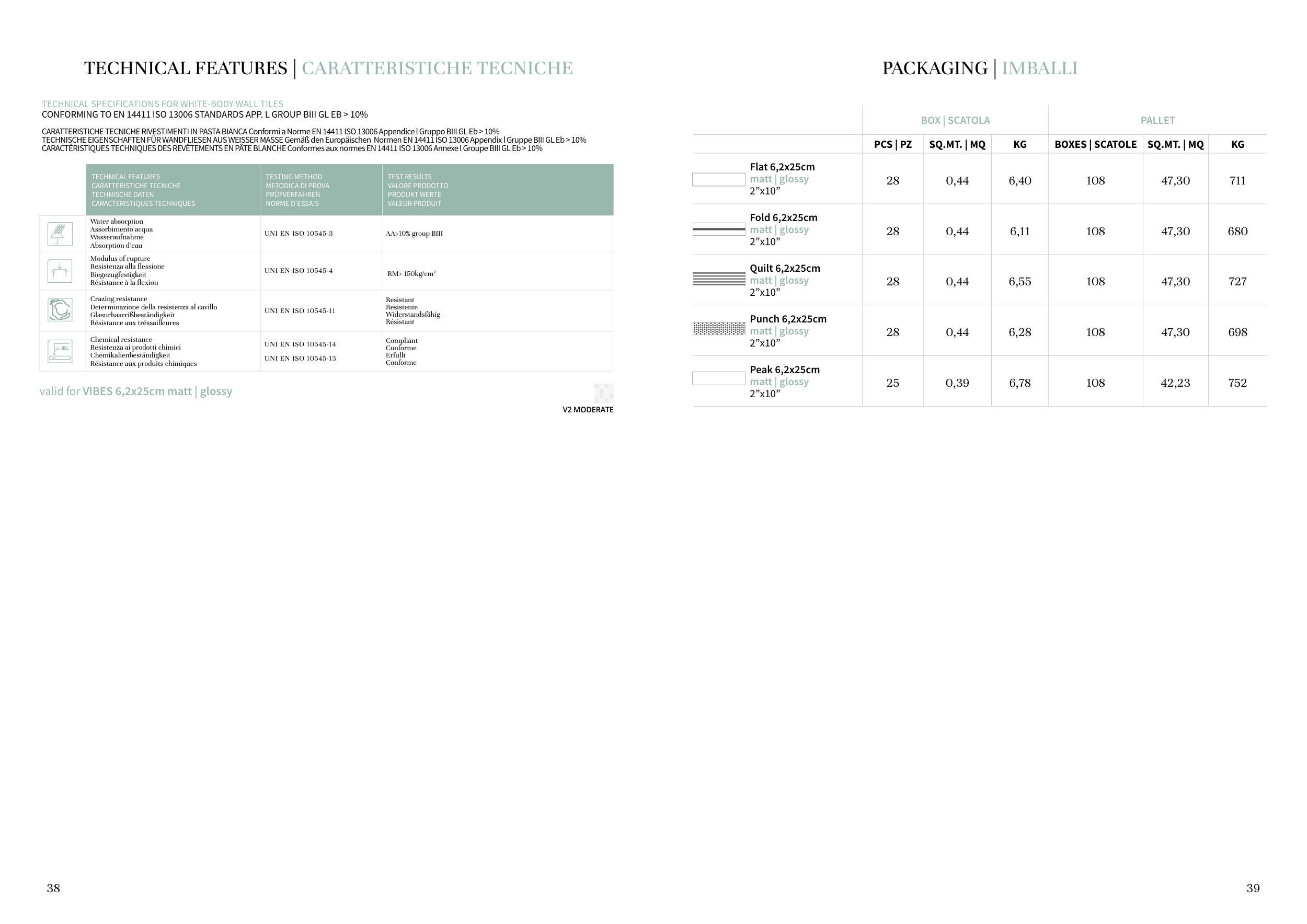 CARATTERISTICHE TECNICHE RIVESTIMENTI IN PASTA BIANCA Conformi a Norme EN 14411 ISO 13006 Appendice l Gruppo BIII GL Eb > 10%