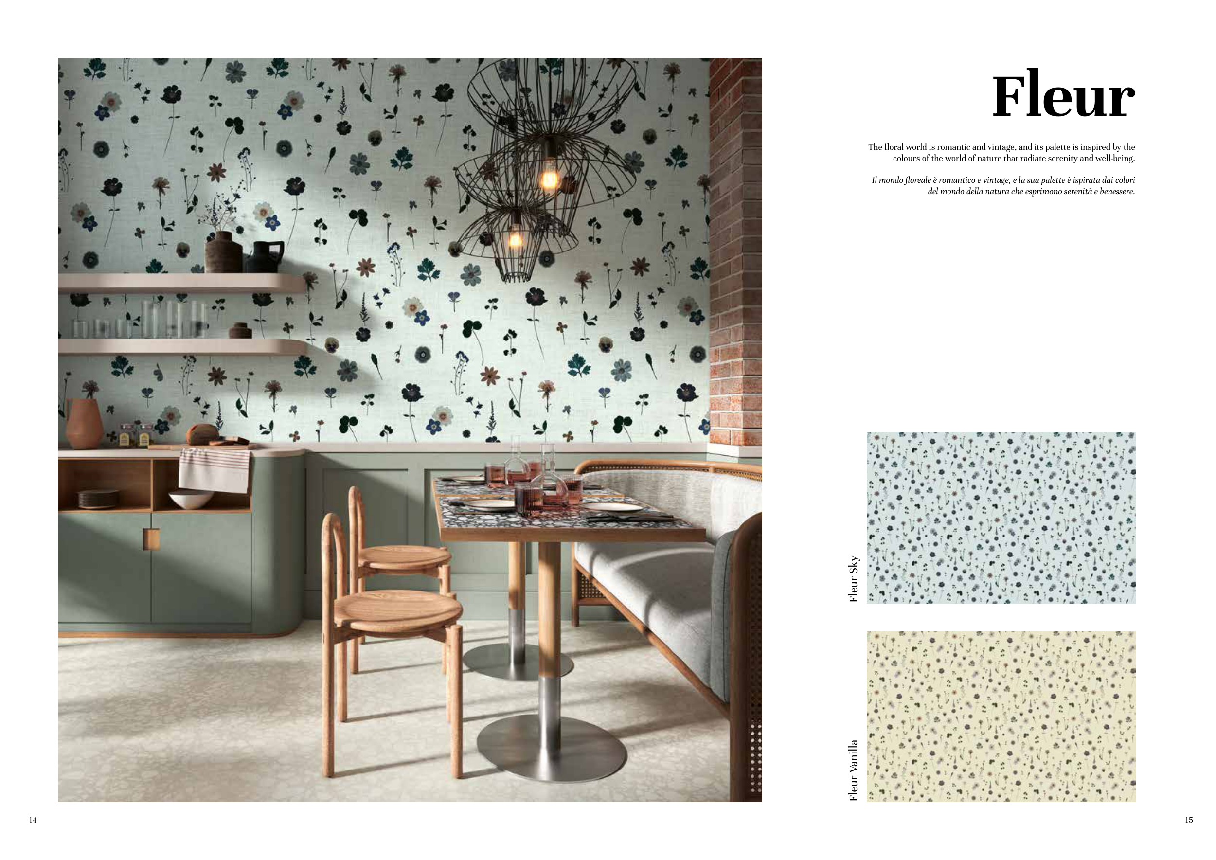 Il mondo floreale è romantico e vintage, e la sua palette è ispirata dai colori