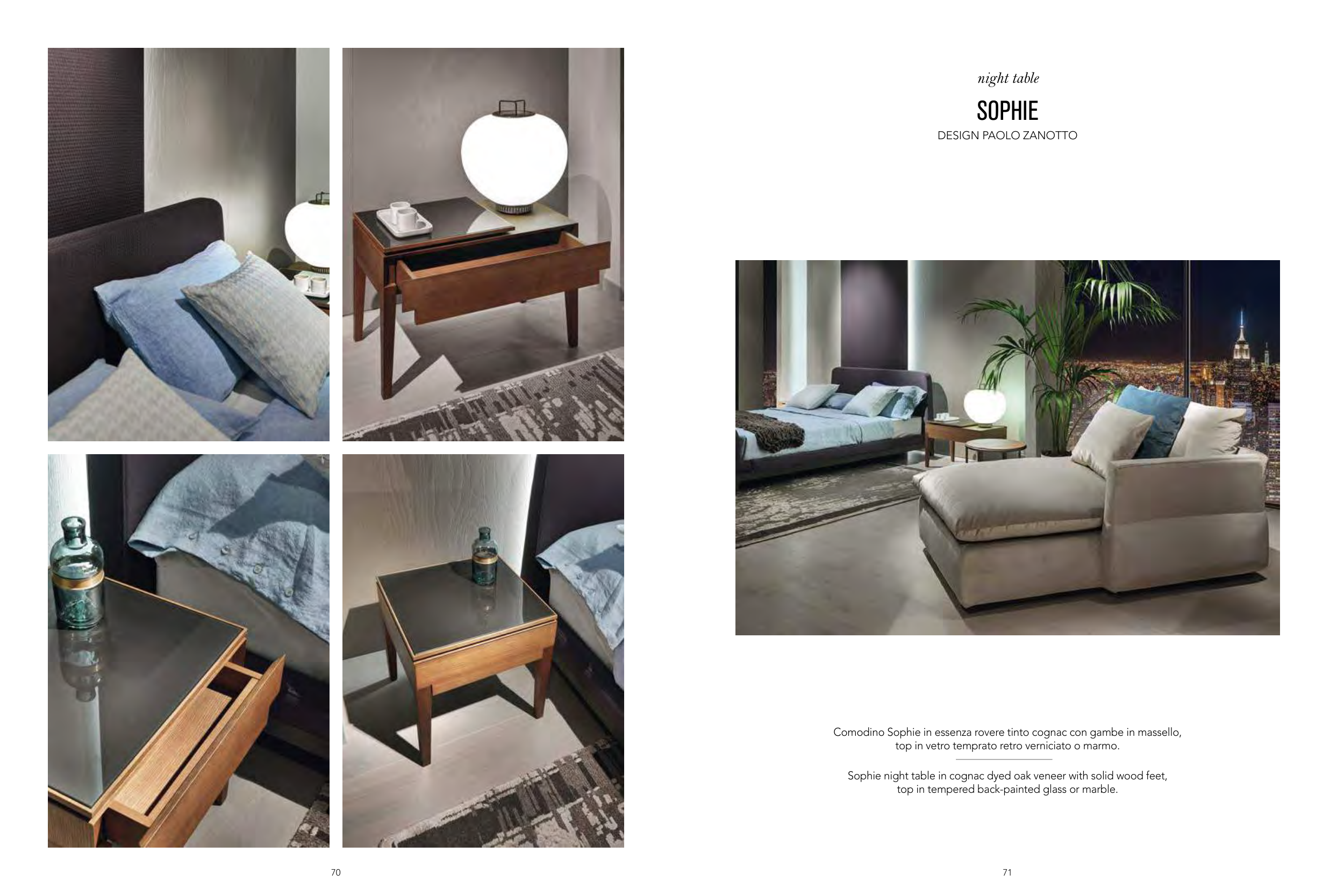 Sophie night table in cognac dyed oak veneer with solid wood feet,