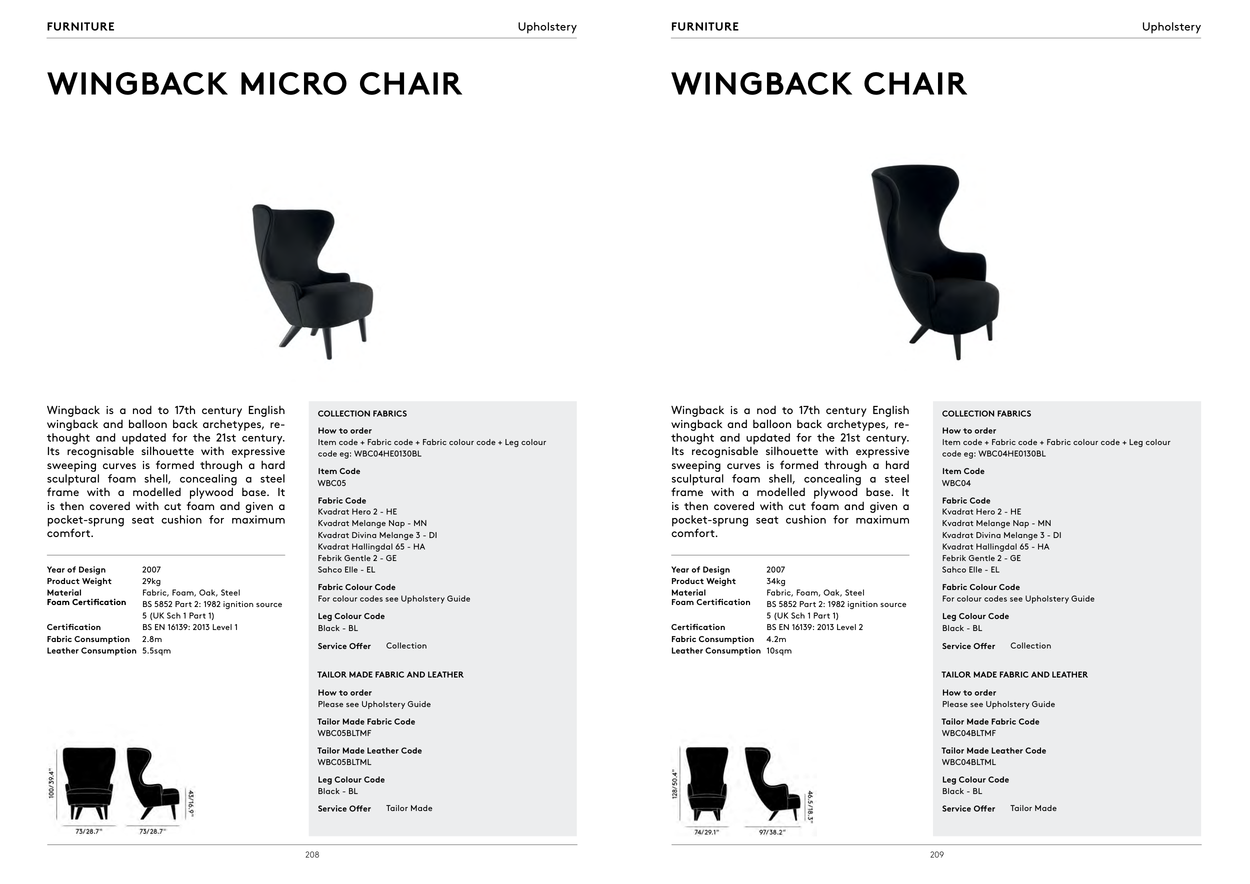 For colour codes see Upholstery Guide