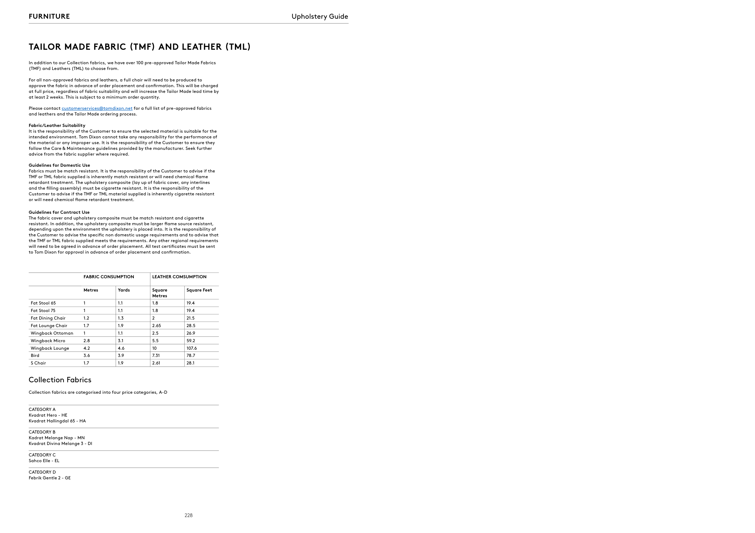 Please contact customerservices@tomdixon.net for a full list of pre-approved fabrics