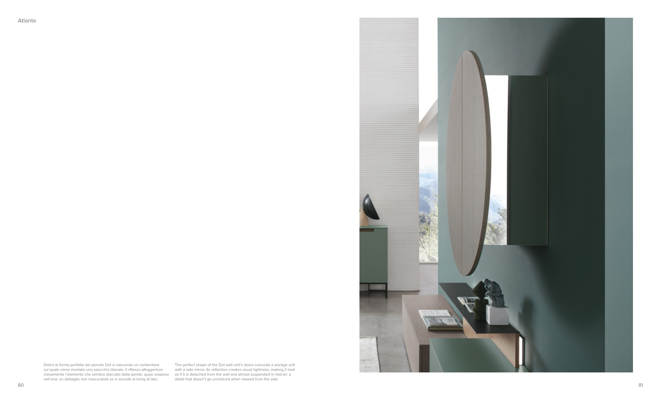 The perfect shape of the Dot wall unit’s doors conceals a storage unit