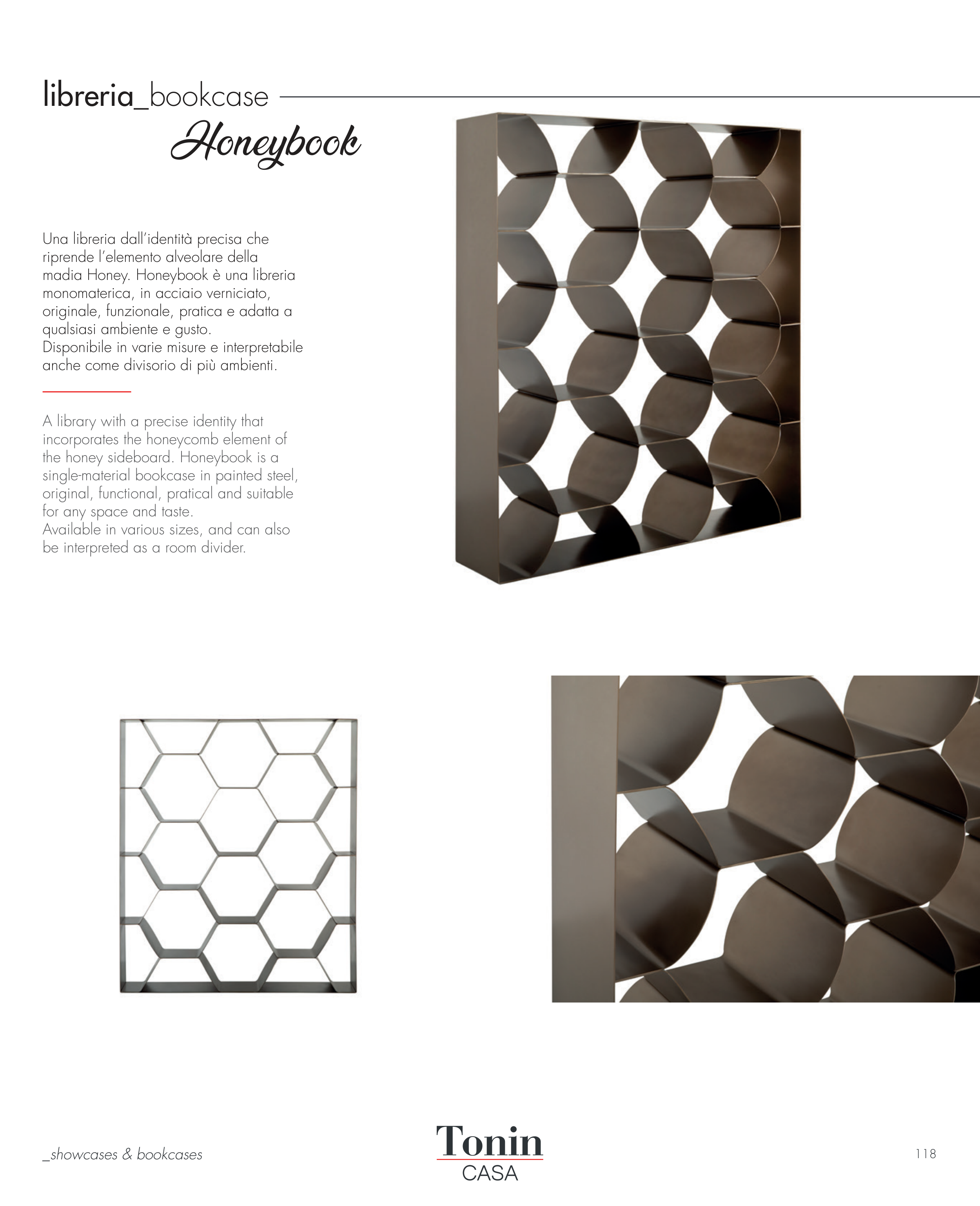 single-material bookcase in painted steel,