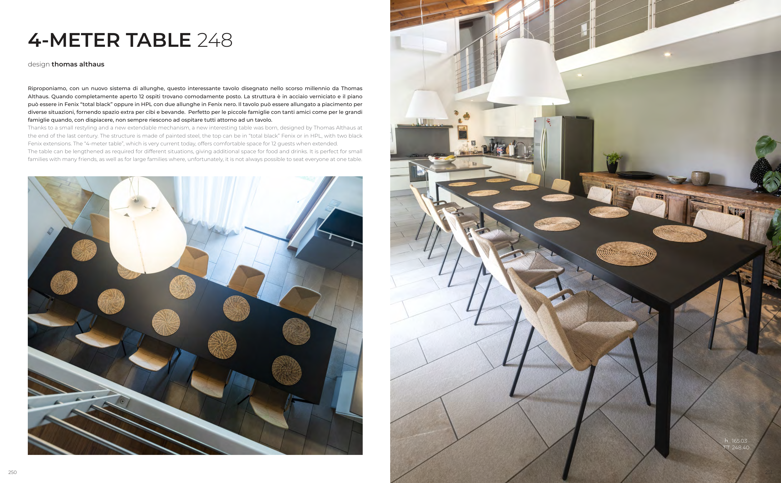 Fenix extensions. The “4-meter table”, which is very current today, offers comfortable space for 12 guests when extended.