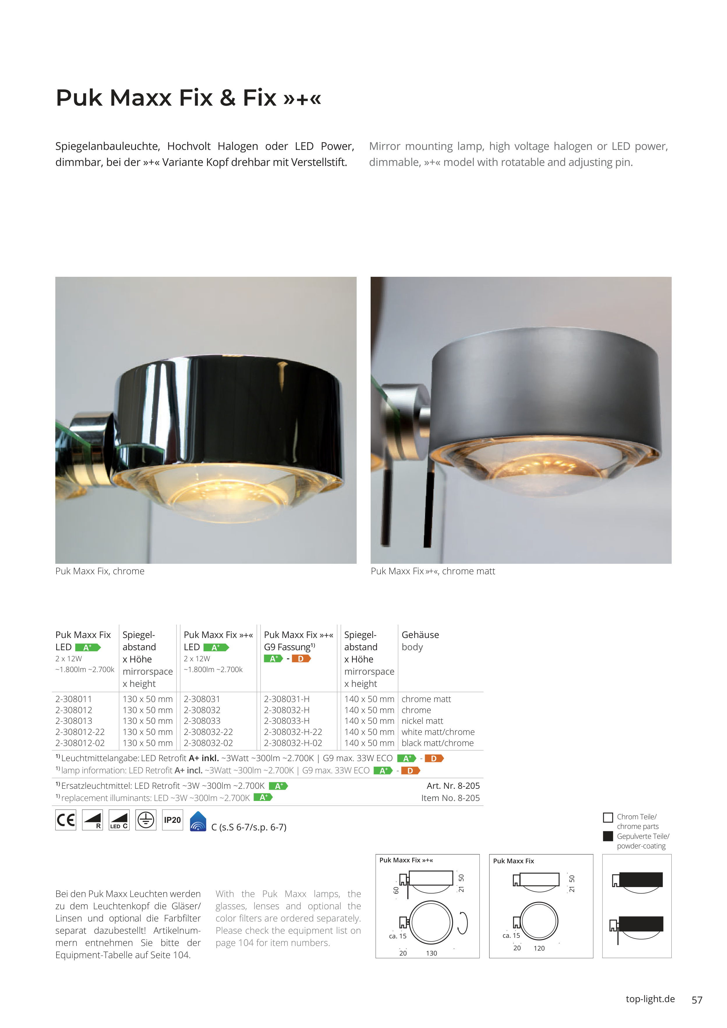 dimmbar, bei der »+« Variante Kopf drehbar mit Verstellstift.