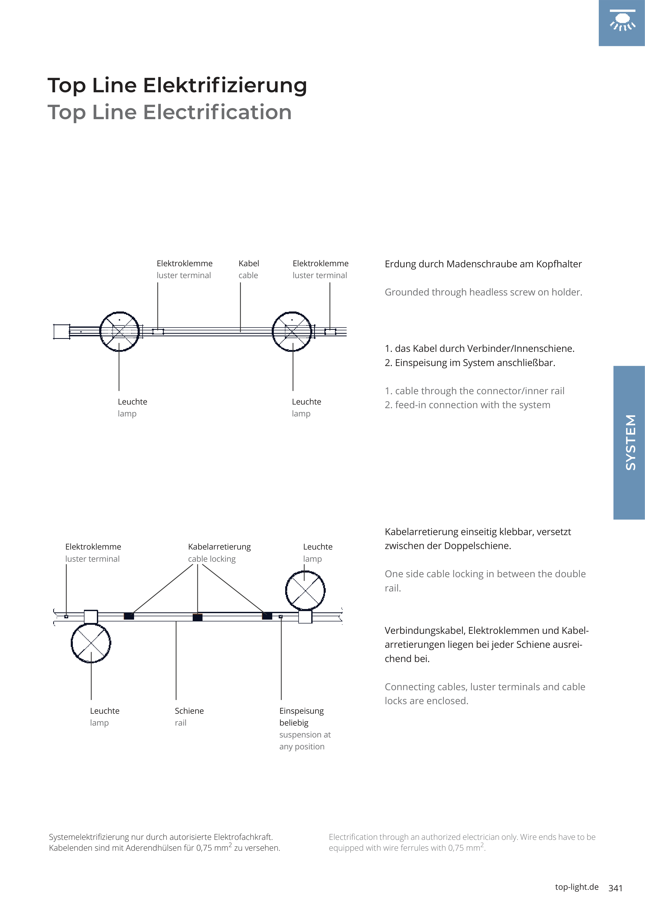 Systemelektrifi zierung nur durch autorisierte Elektrofachkraft.