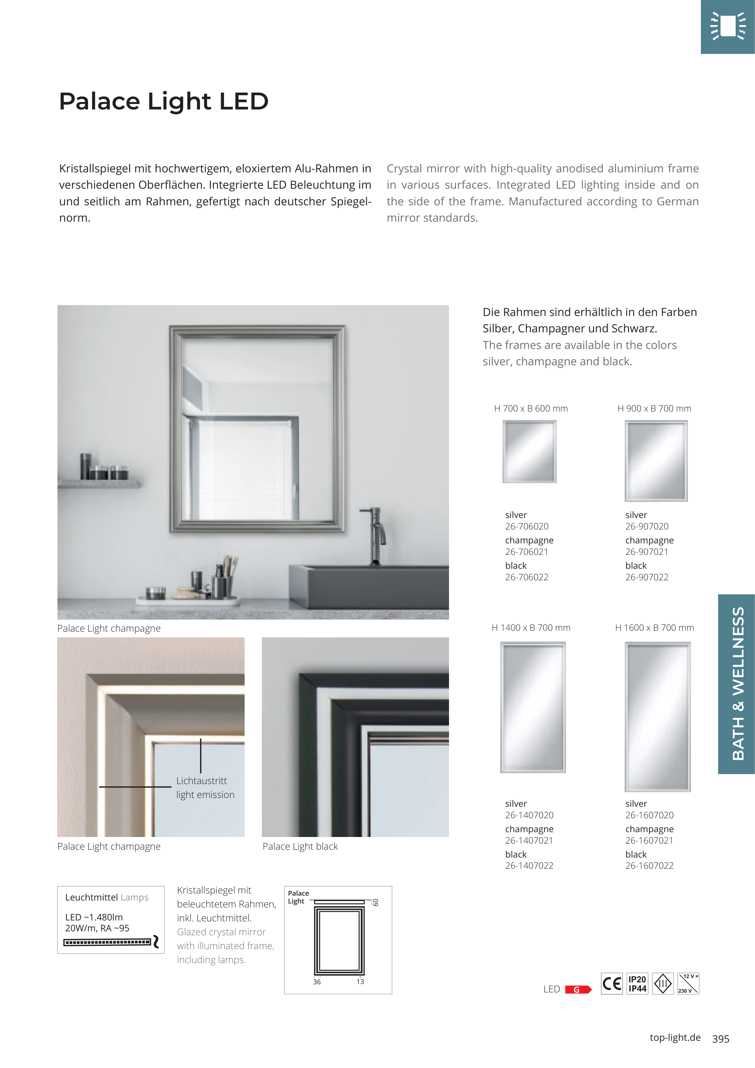 Kristallspiegel mit hochwertigem, eloxiertem Alu-Rahmen in