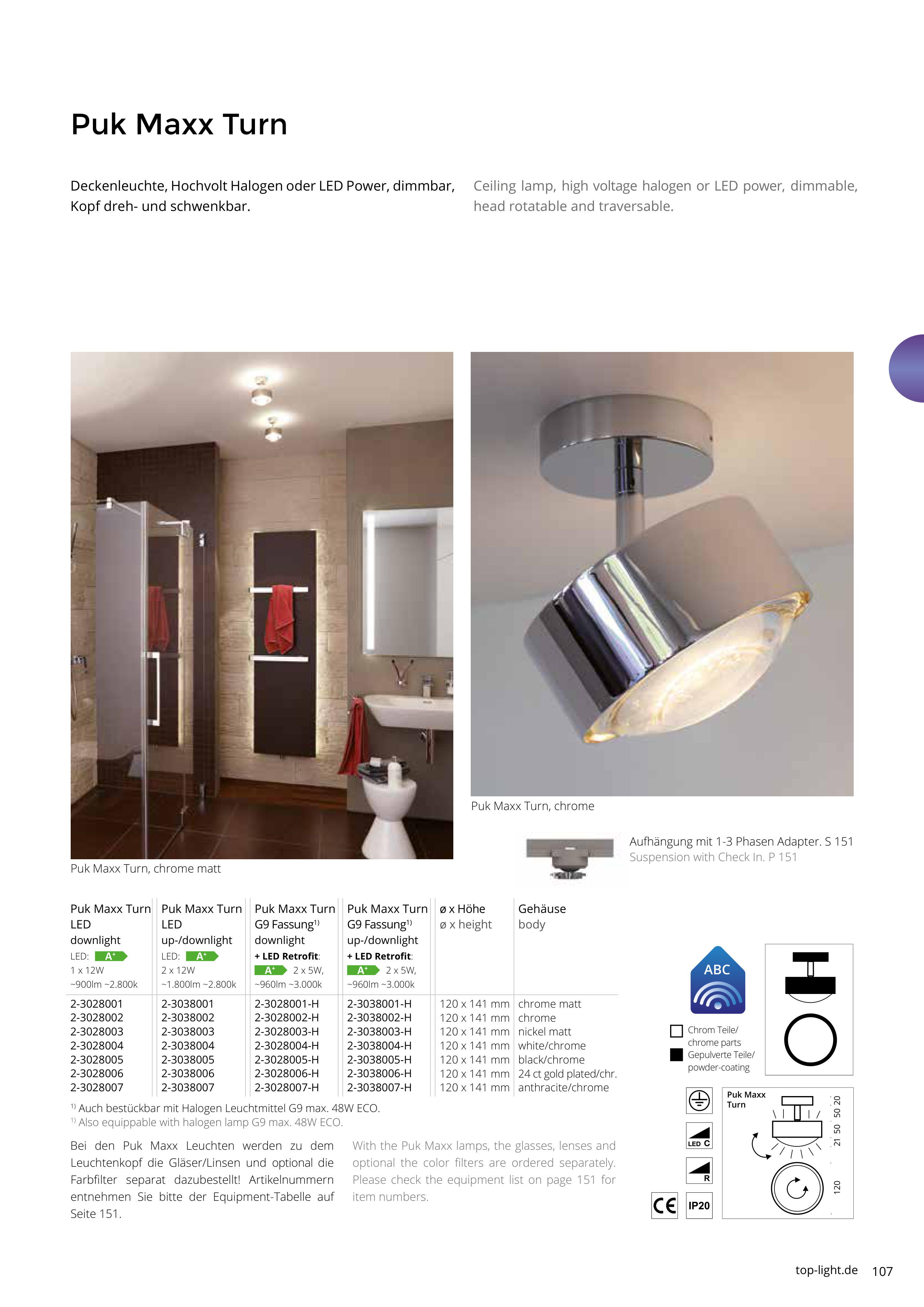 1) Also equippable with halogen lamp G9 max. 48W ECO.