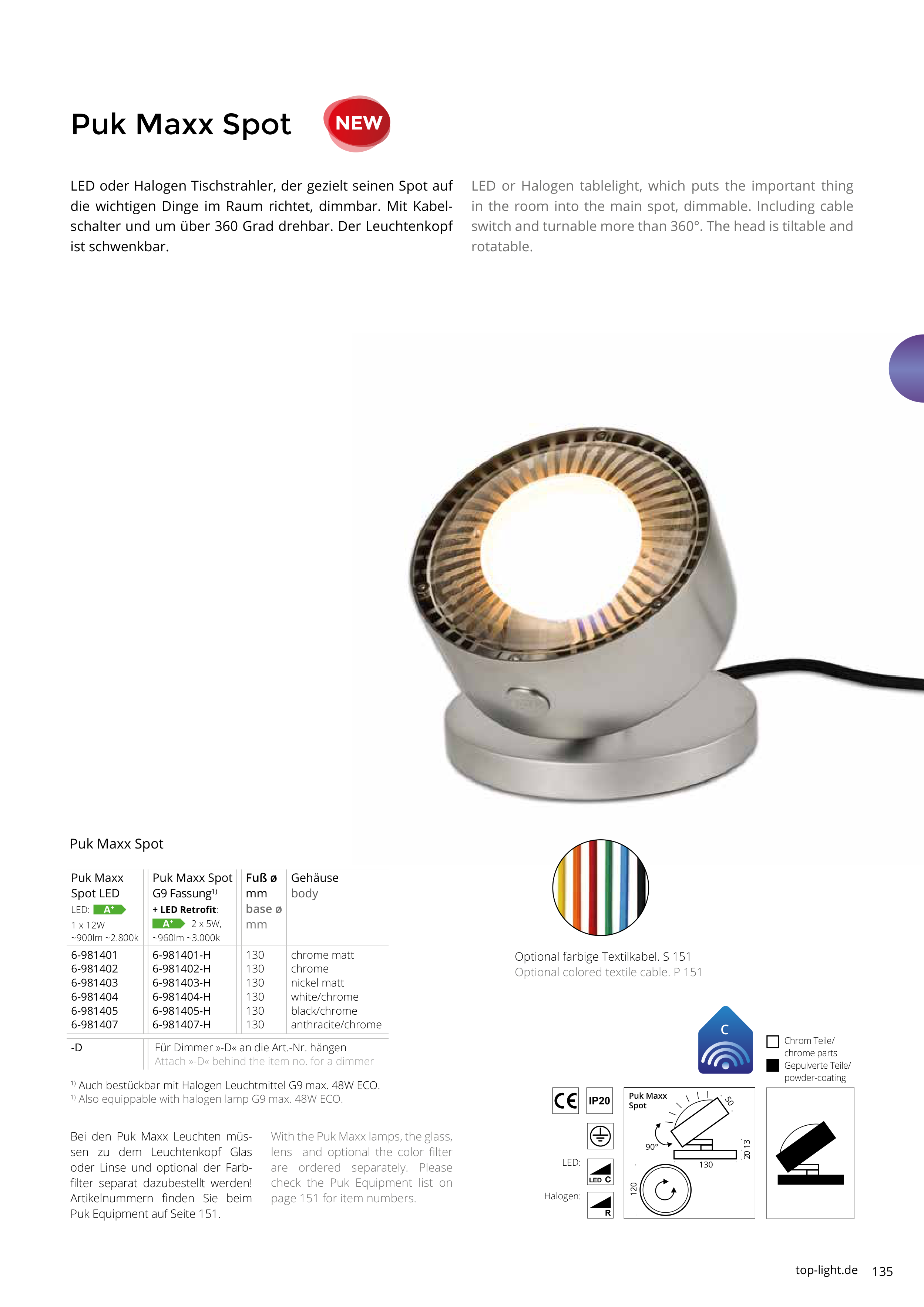 Optional colored textile cable. P 151