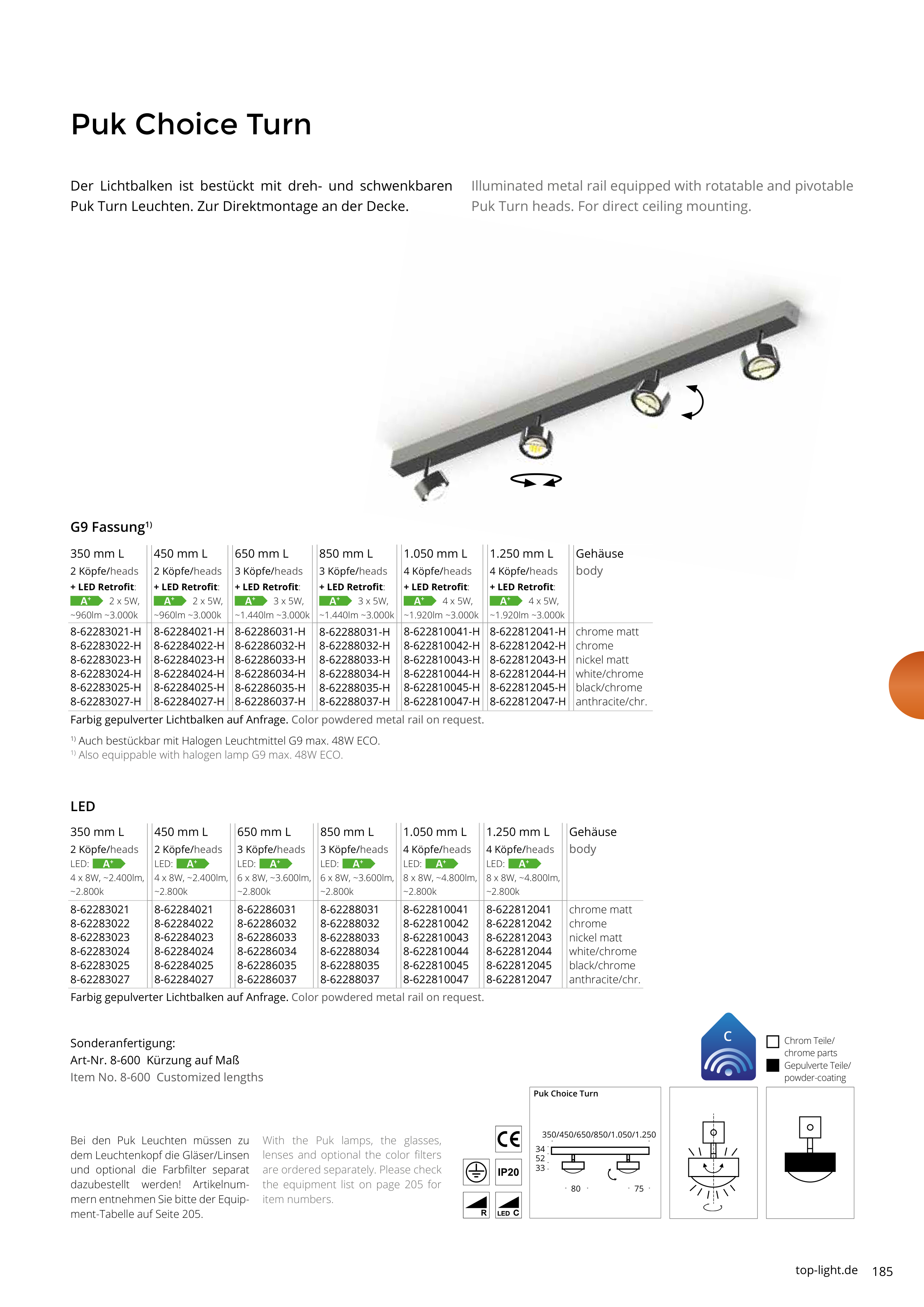 1) Also equippable with halogen lamp G9 max. 48W ECO.