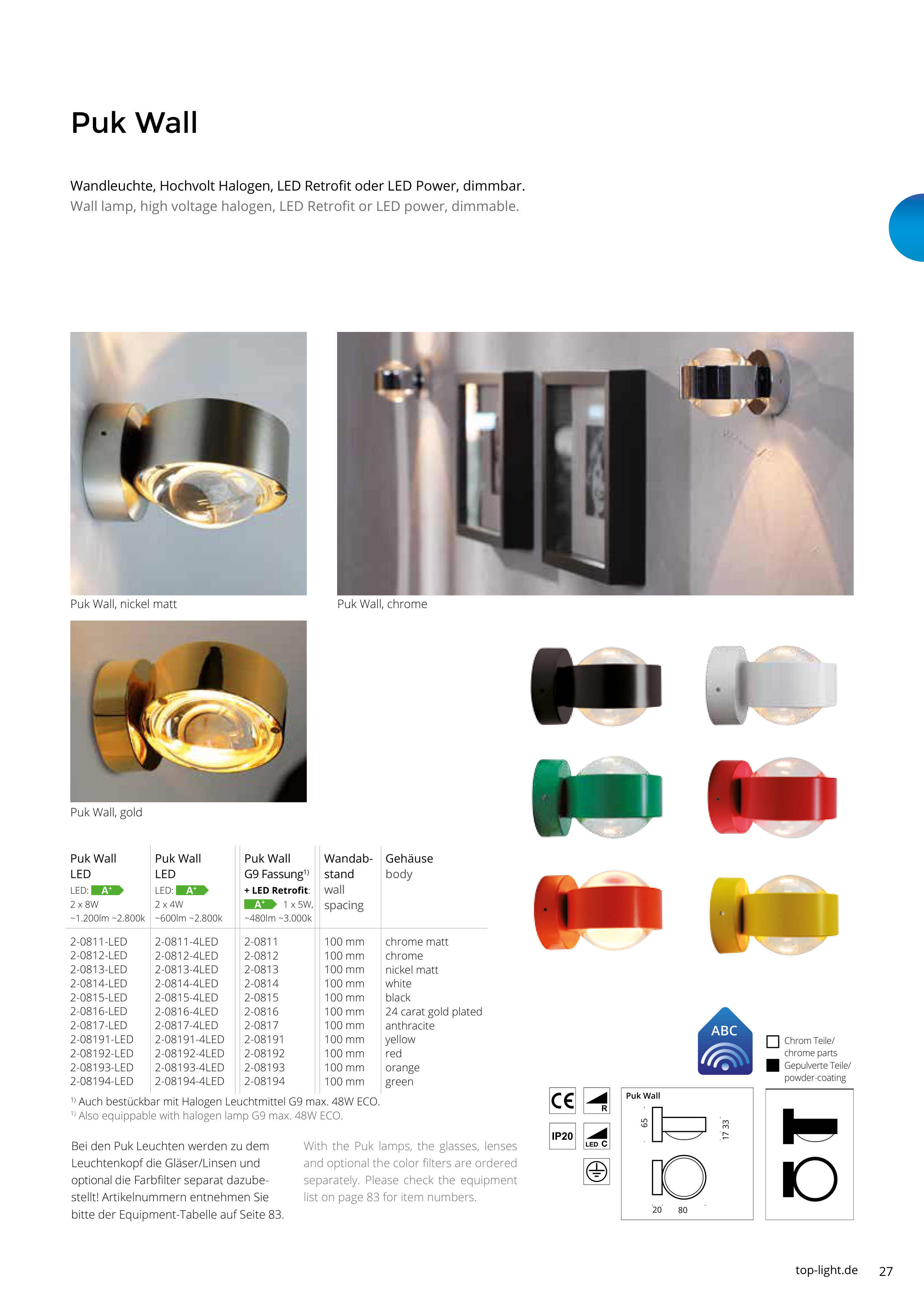 1) Also equippable with halogen lamp G9 max. 48W ECO.