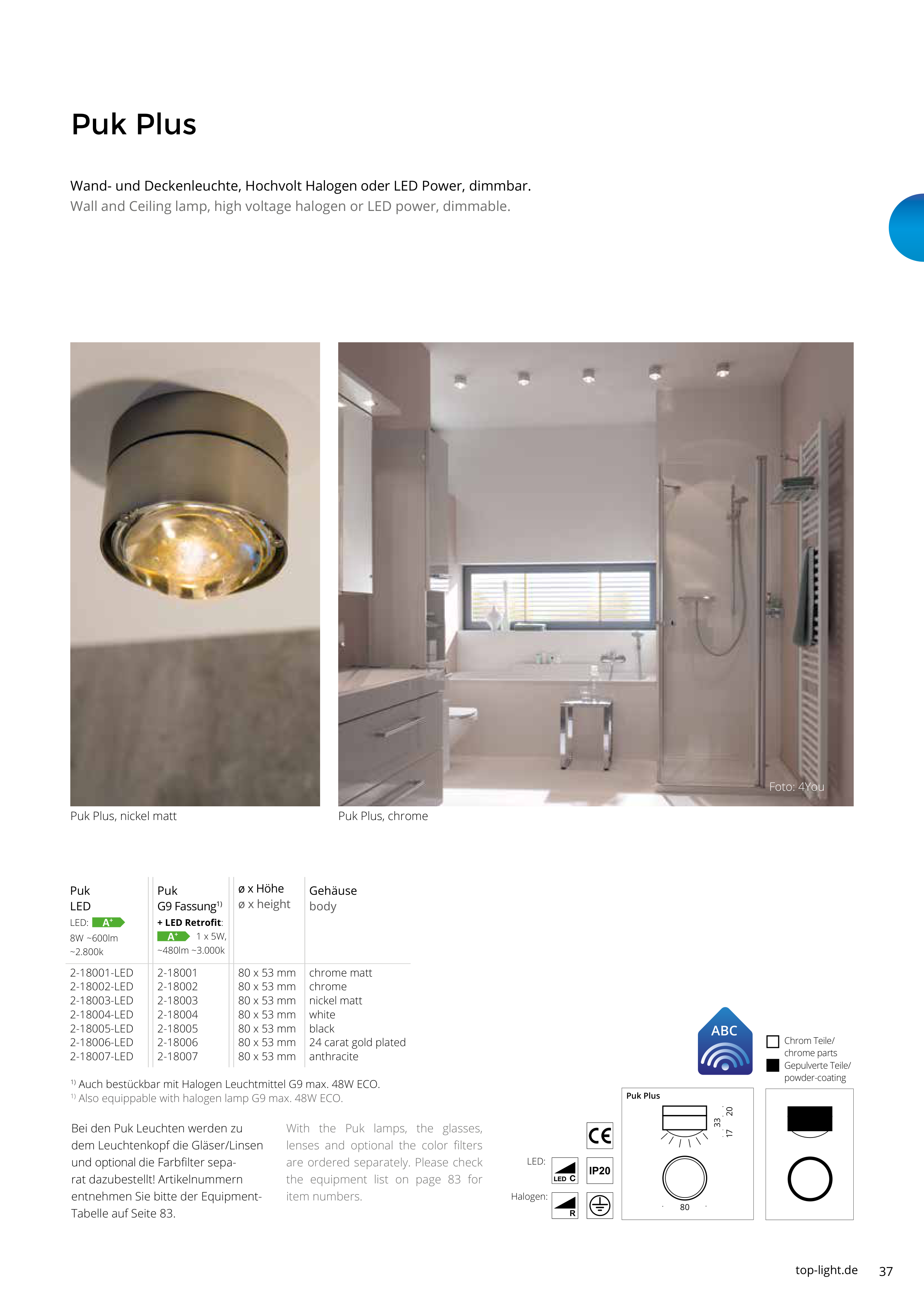 1) Also equippable with halogen lamp G9 max. 48W ECO.