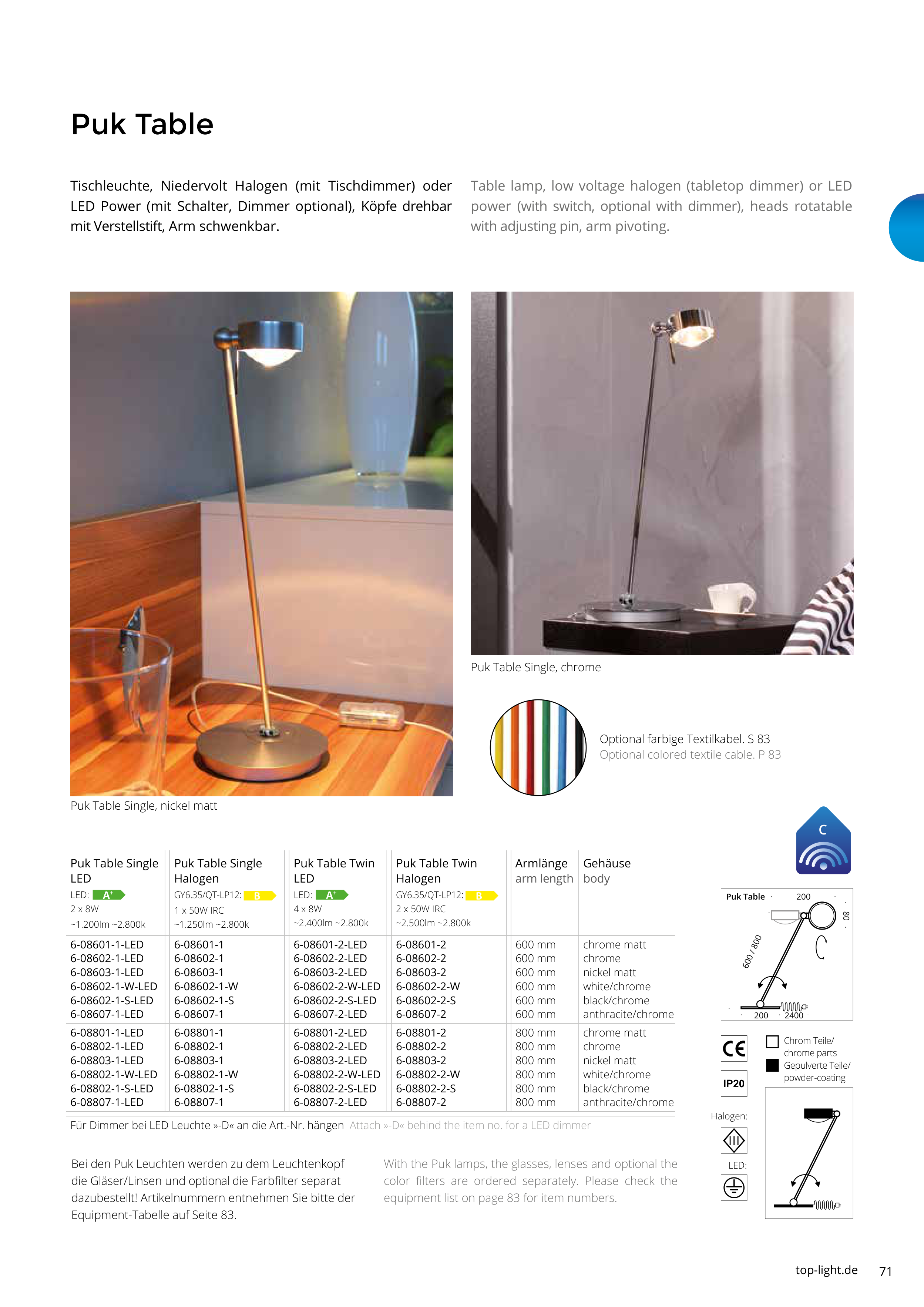 Optional colored textile cable. P 83