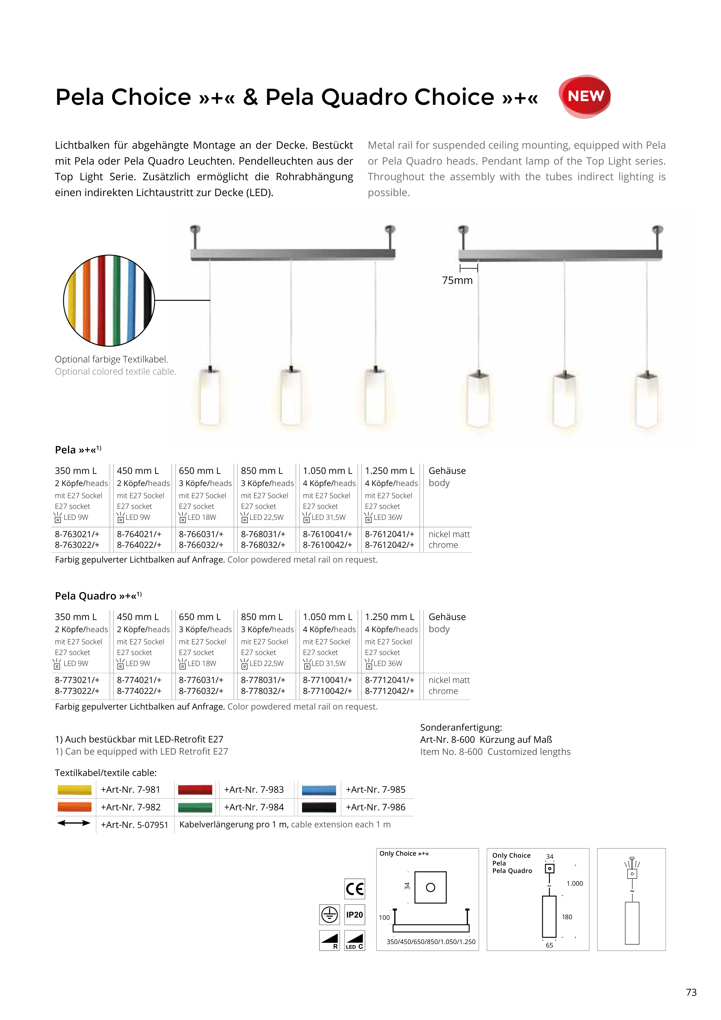 Top Light Serie. Zusätzlich ermöglicht die Rohrabhängung