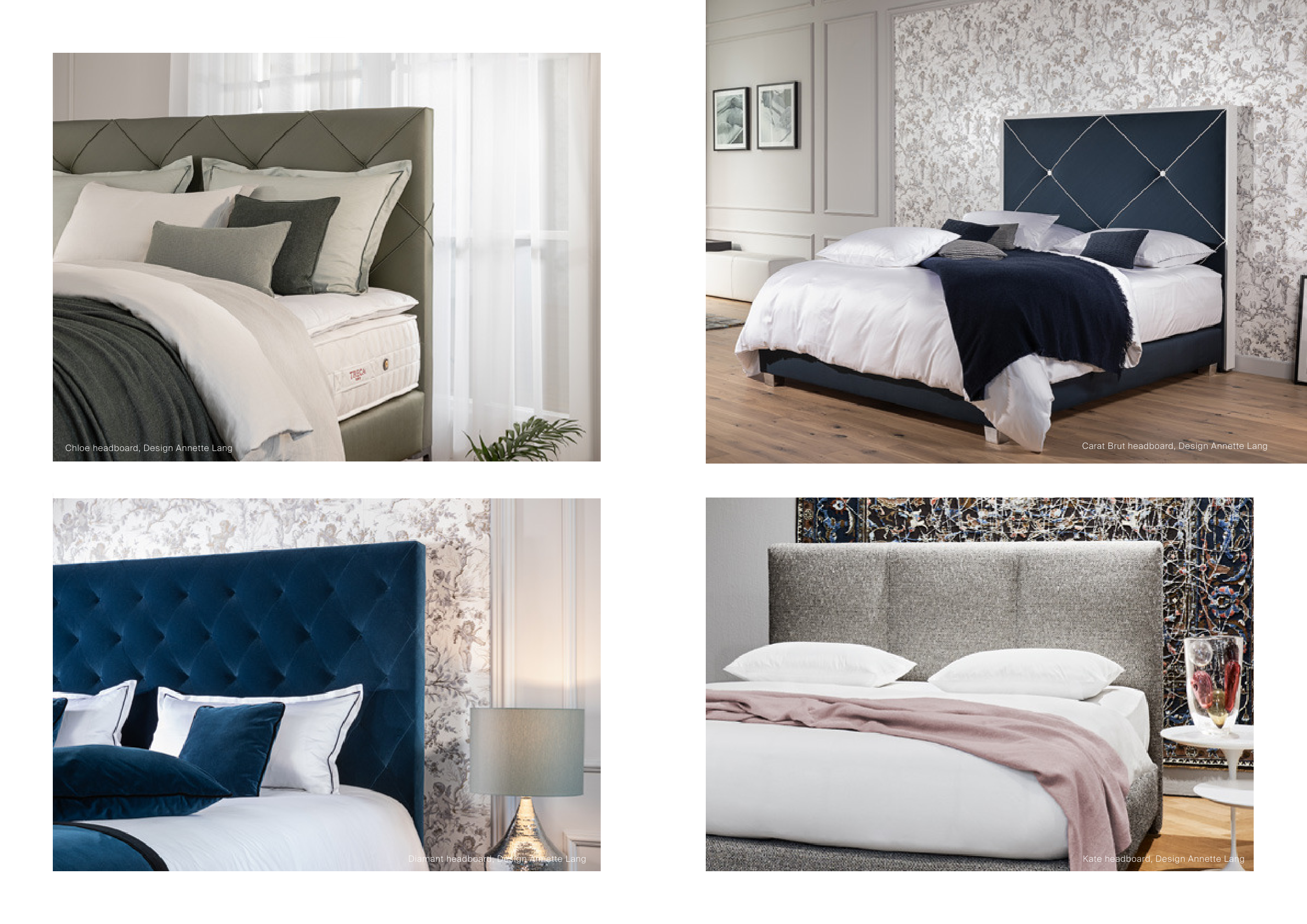 49 48 Diamant headboard, Design Annette Lang Chloe headboard, Design Annette Lang Kate headboard, Design Annette Lang Carat Brut headboard, Design Annette Lang