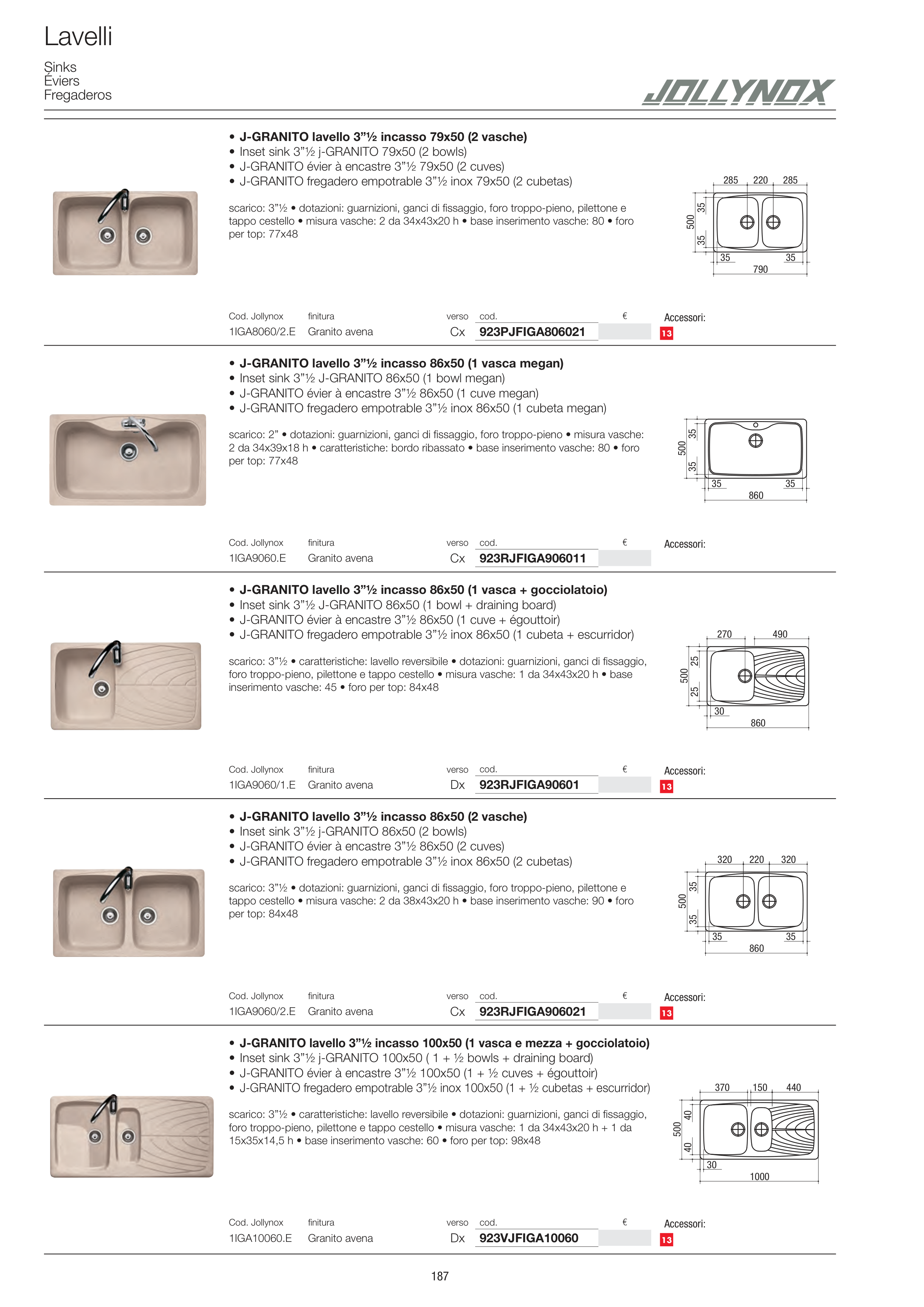 • J-GRANITO lavello 3”½ incasso 86x50 (2 vasche)