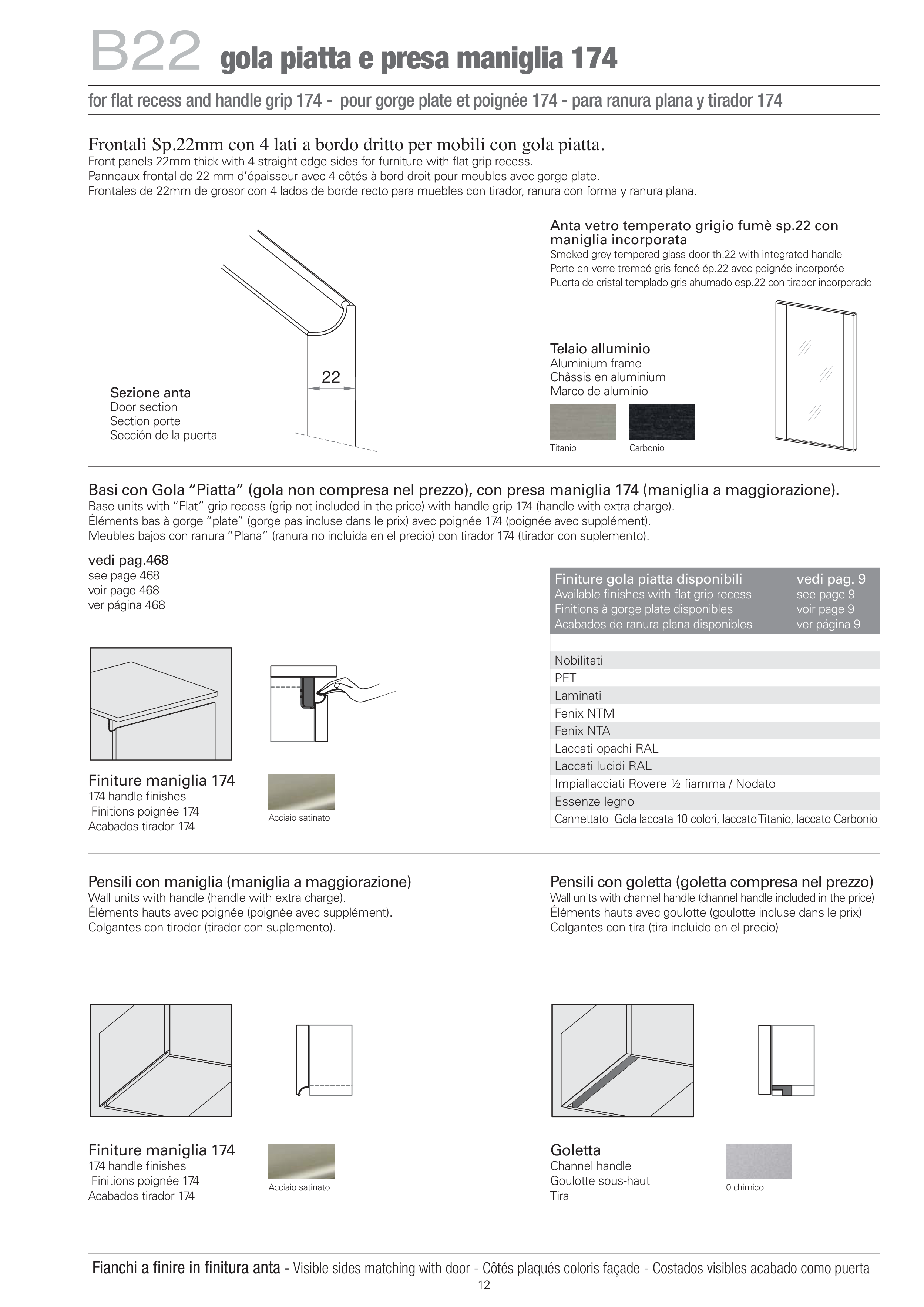 Basi con Gola “Piatta” (gola non compresa nel prezzo), con presa maniglia 174 (maniglia a maggiorazione).