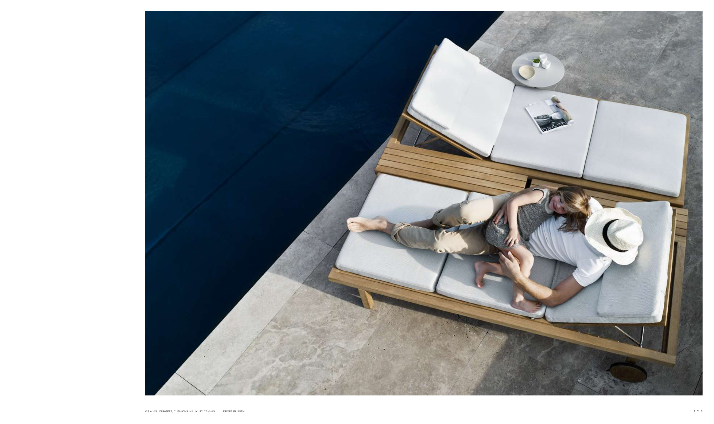 VIS À VIS LOUNGERS, CUSHIONS IN LUXURY CANVAS. DROPS IN LINEN.