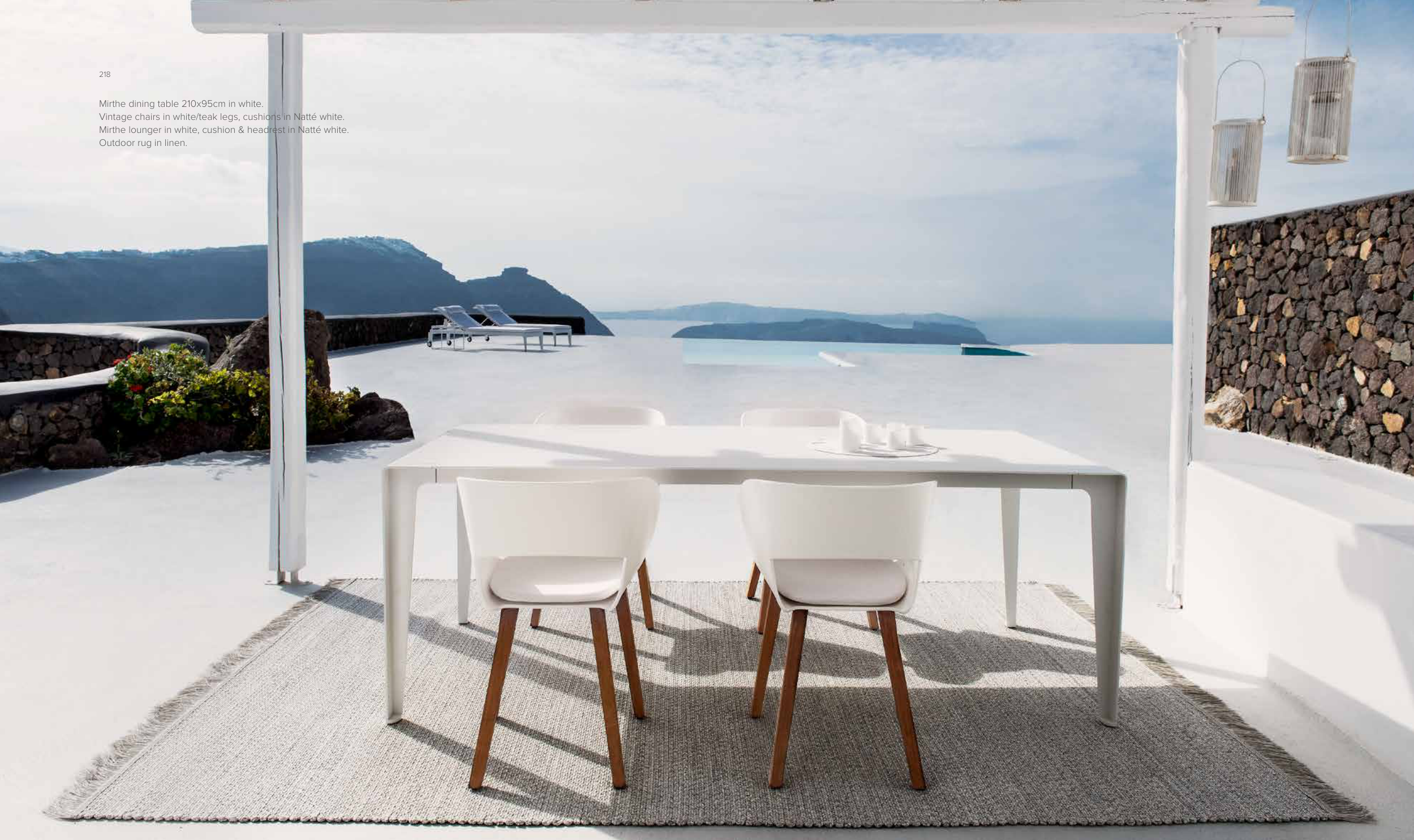 Vintage chairs in white/teak legs, cushions in Natté white.