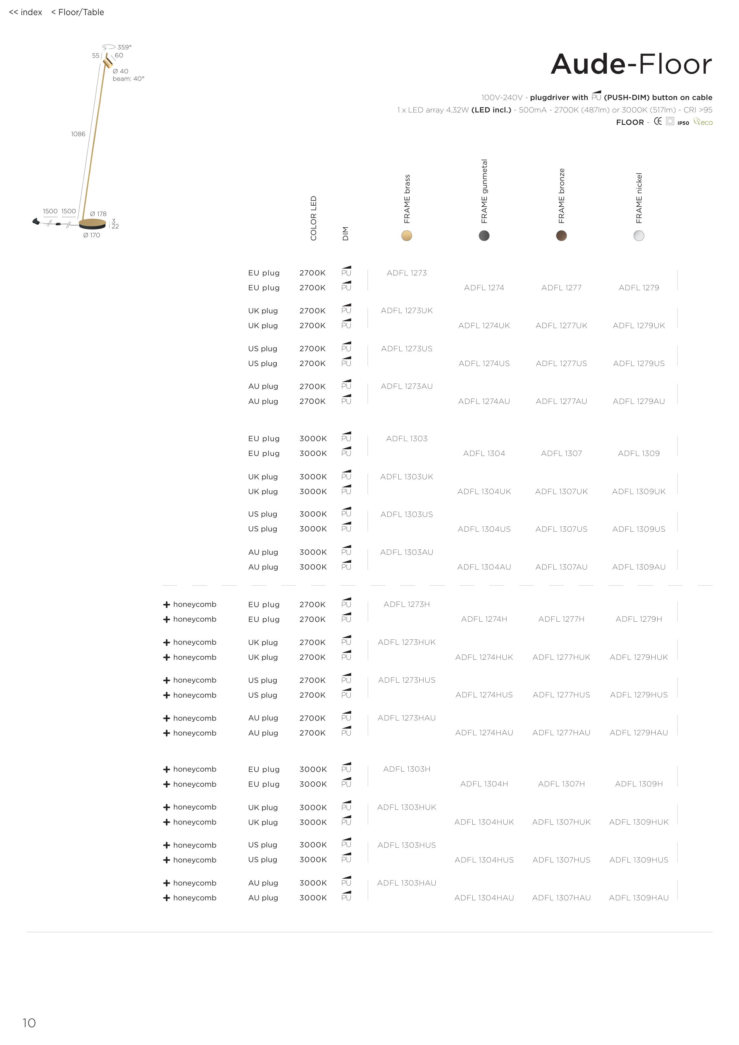1 x LED array 4,32W (LED incl.) - 500mA - 2700K (487lm) or 3000K (517lm) - CRI >95