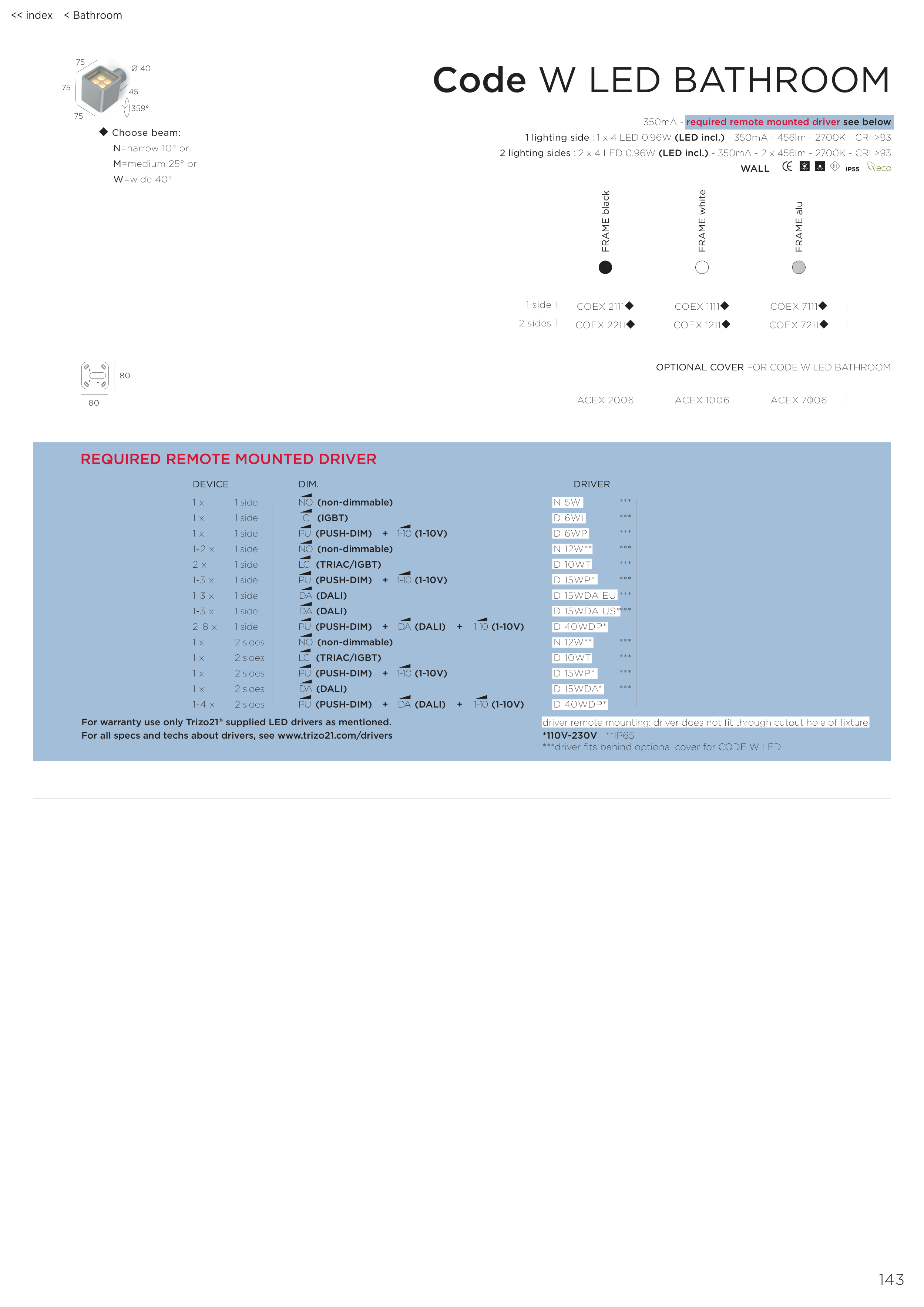 ***driver fits behind optional cover for CODE W LED
