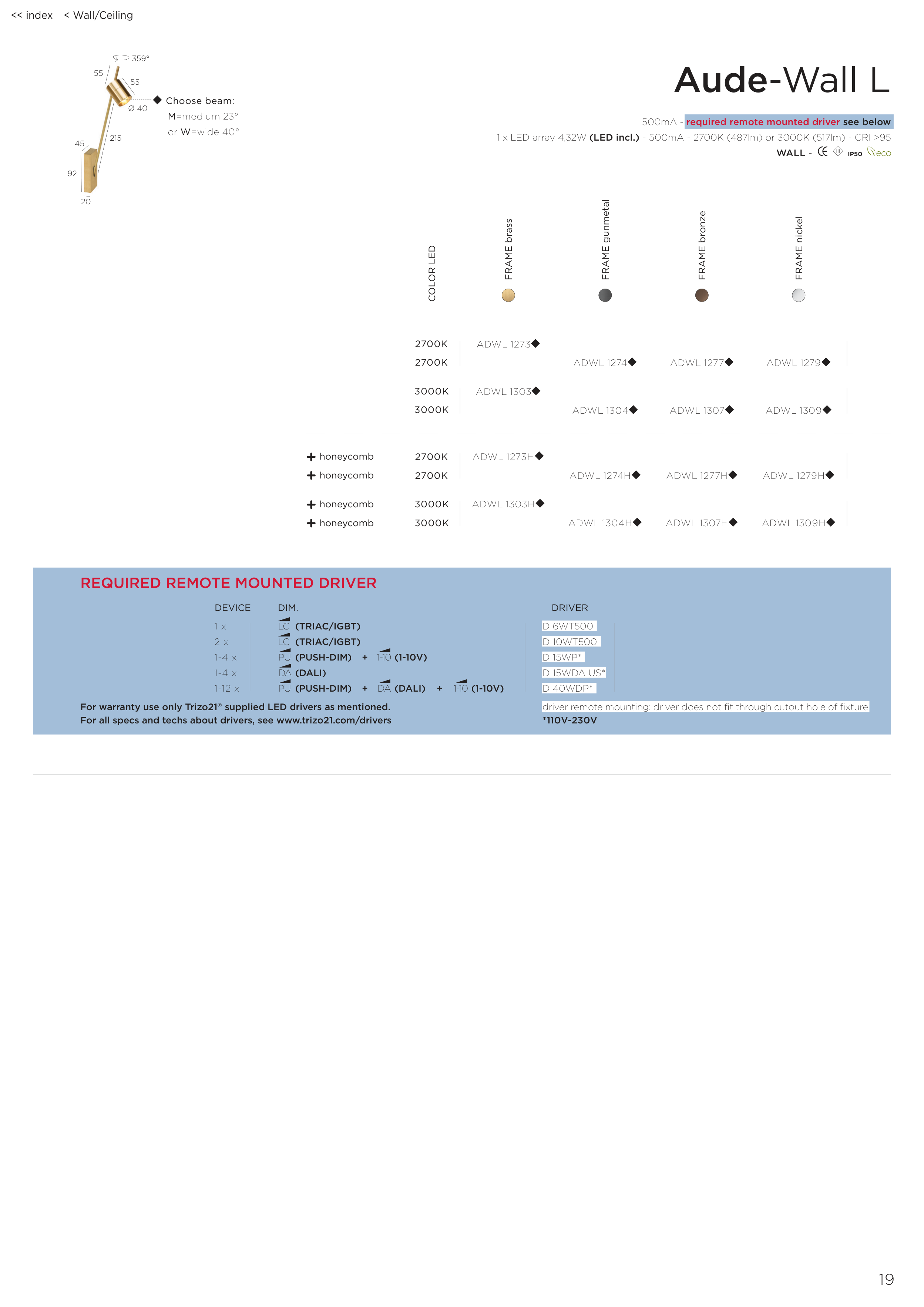 For warranty use only Trizo21® supplied LED drivers as mentioned.
