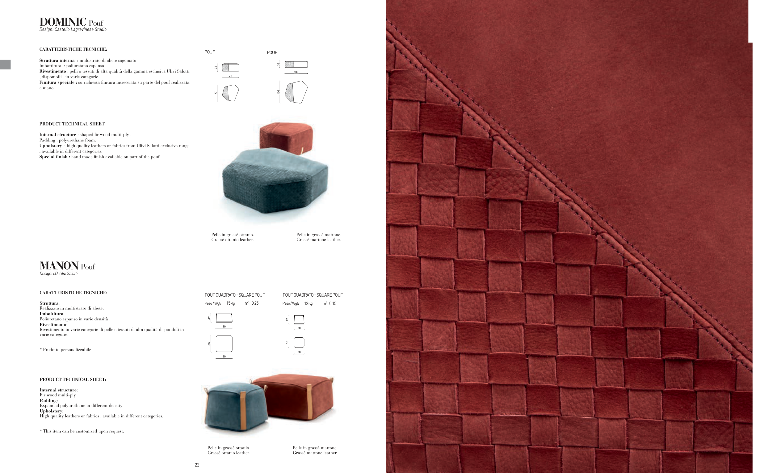 Special finish : hand made finish available on part of the pouf.