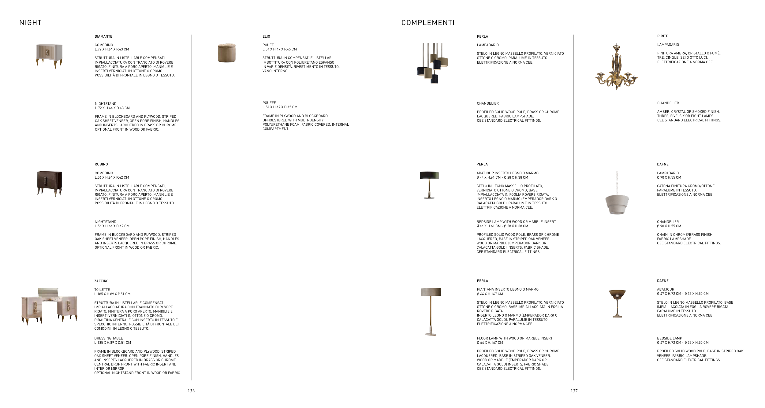 AND INSERTS LACQUERED IN BRASS OR CHROME.