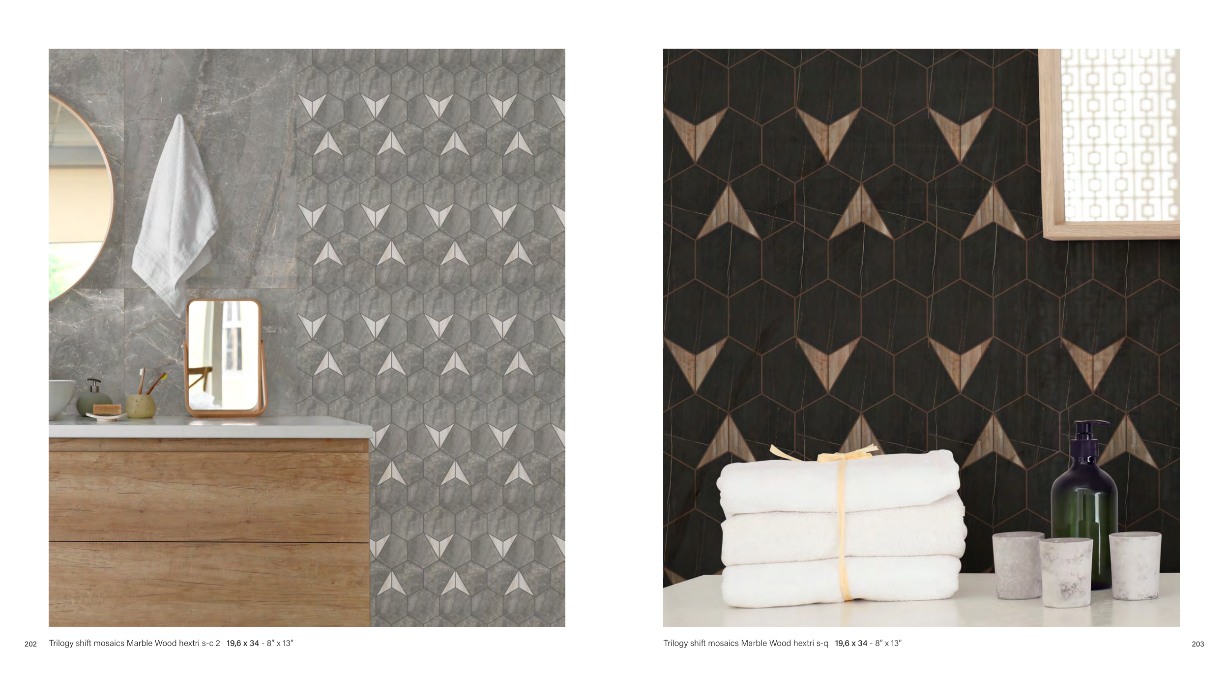 Trilogy shift mosaics Marble Wood hextri s-q 19,6 x 34 - 8” x 13”