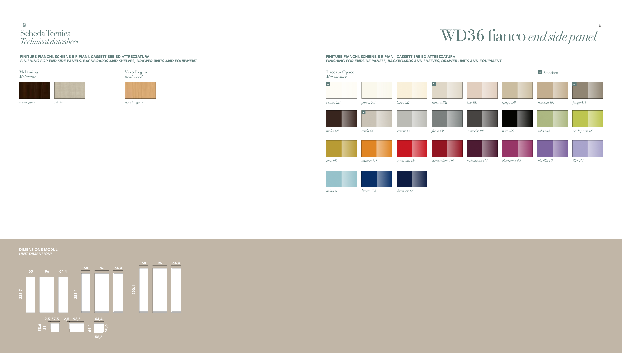 FINITURE FIANCHI, SCHIENE E RIPIANI, CASSETTIERE ED ATTREZZATURA