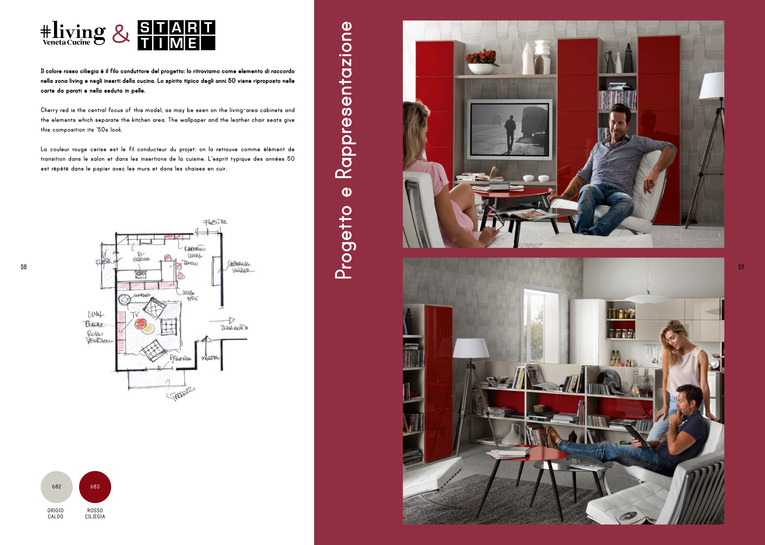 transition dans le salon et dans les insertions de la cuisine. L’esprit typique des années 50