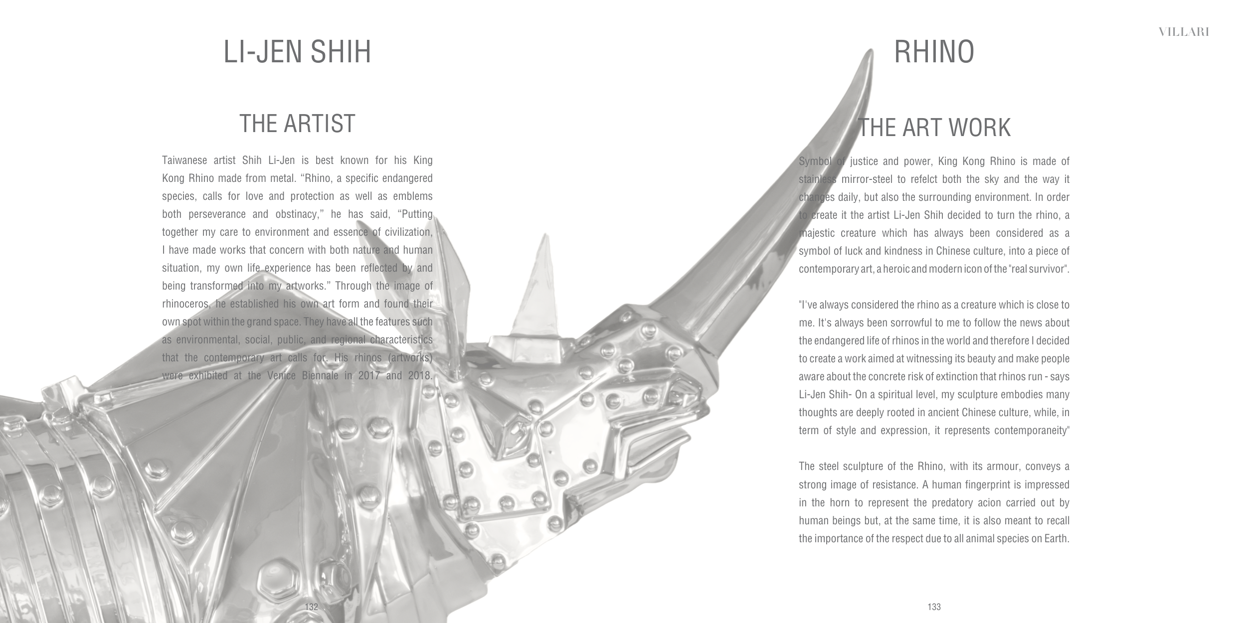The steel sculpture of the Rhino, with its armour, conveys a