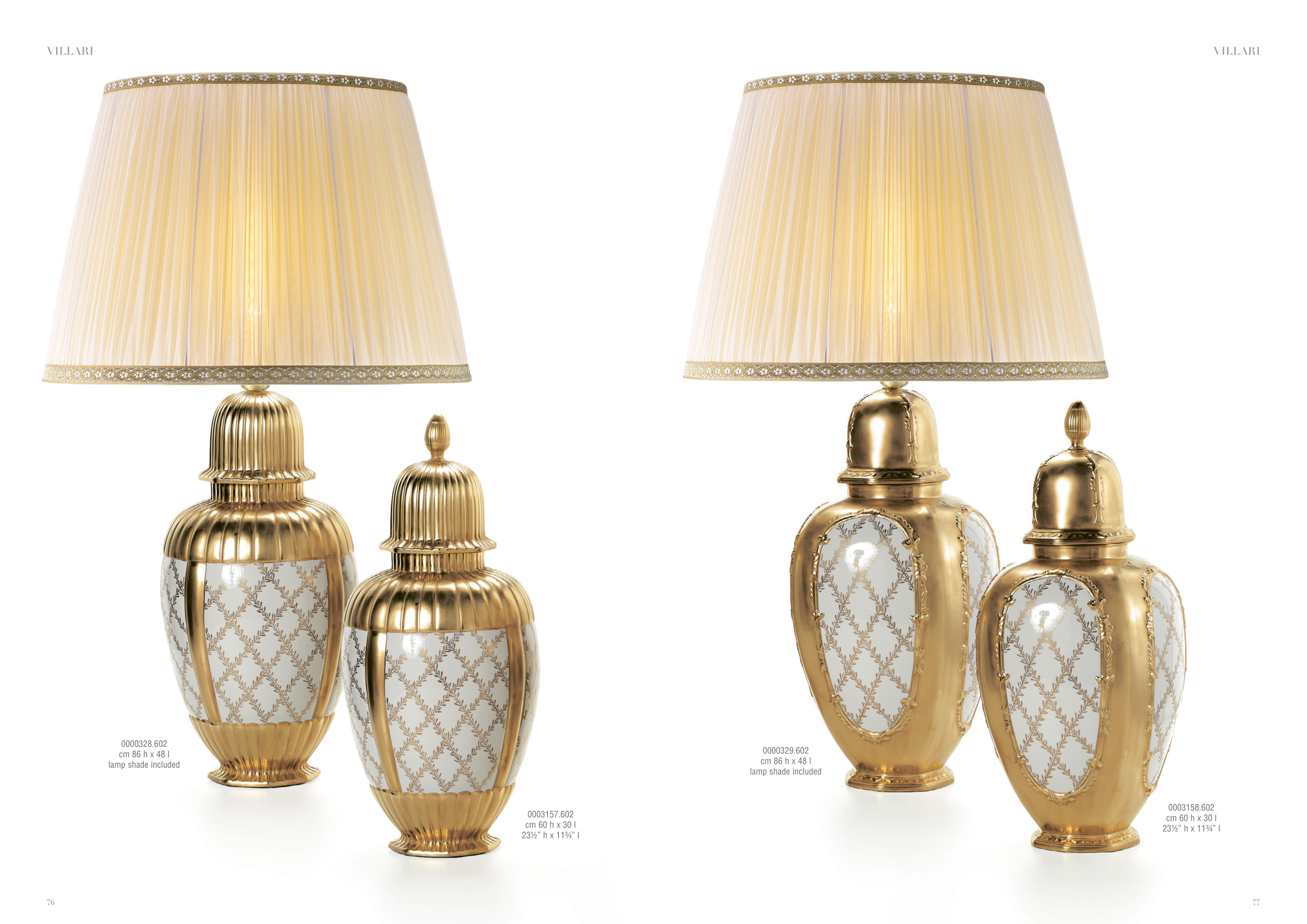 0000328.602 cm 86 h x 48 l lamp shade included 0003157.602 cm 60 h x 30 l 23½” h x 11¾” l 0003158.602 cm 60 h x 30 l 23½” h x 11¾” l 0000329.602 cm 86 h x 48 l lamp shade included 77 76