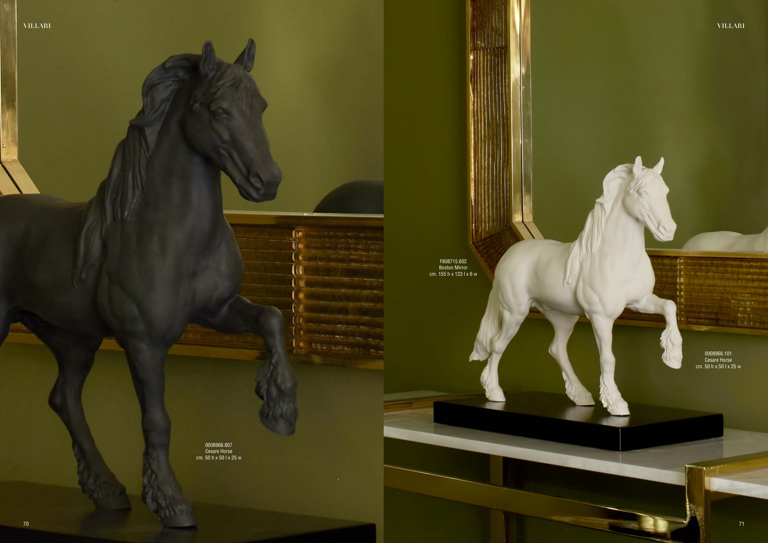 0008966.807 Cesare Horse cm. 50 h x 50 l x 25 w 0008966.101 Cesare Horse cm. 50 h x 50 l x 25 w F808715.602 Boston Mirror cm. 155 h x 123 l x 6 w 71 70