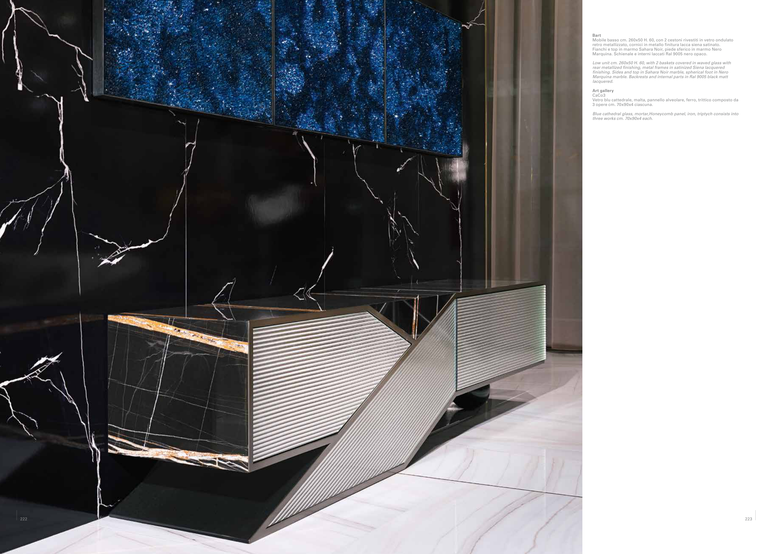 Marquina marble. Backrests and internal parts in Ral 9005 black matt