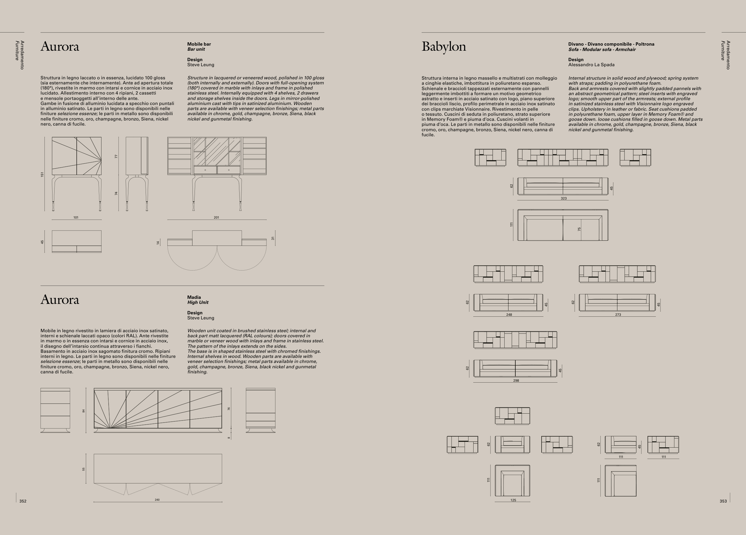 veneer selection finishings; metal parts available in chrome,
